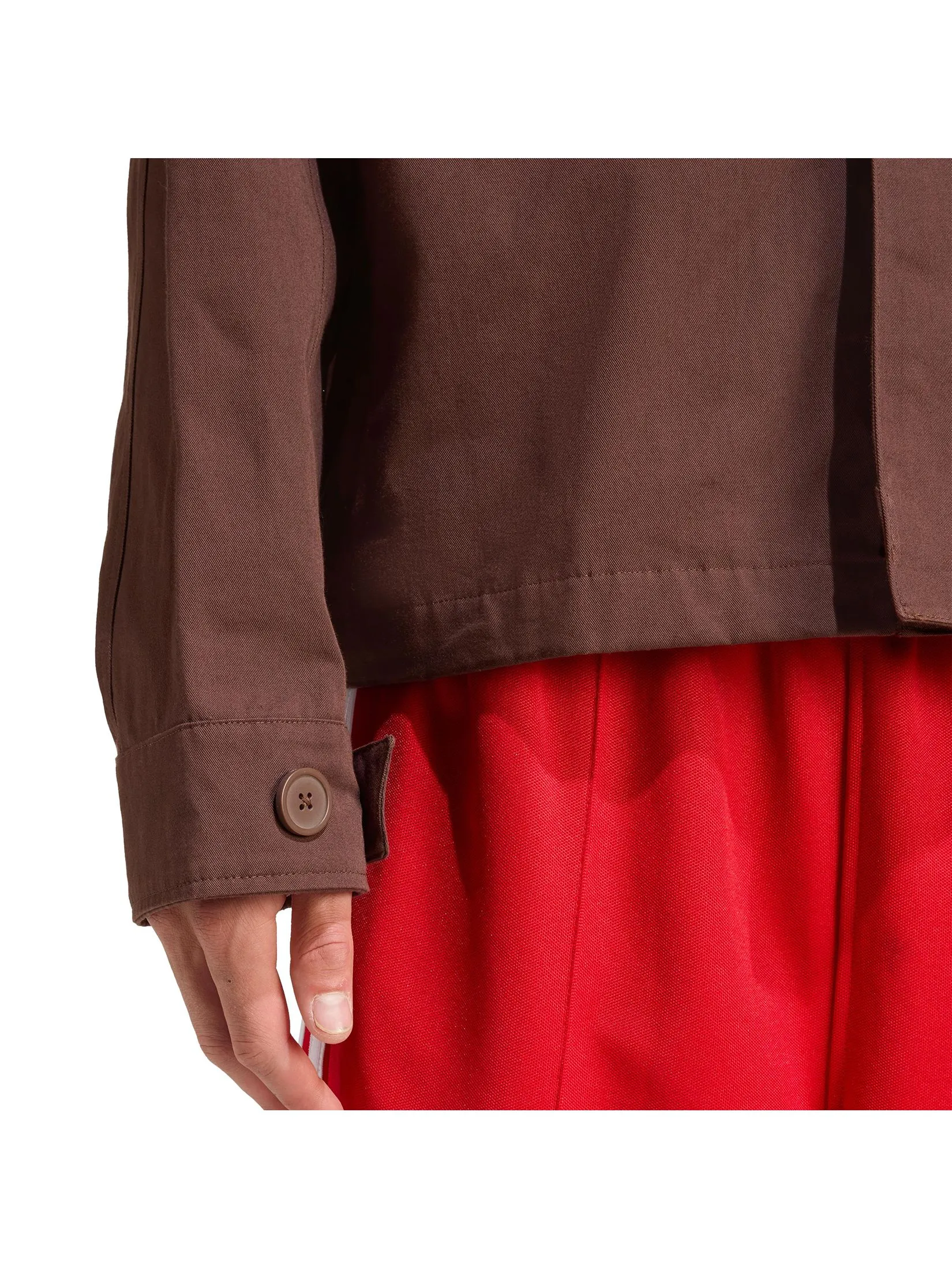 ADIDAS This adidas jacket brings back the brand's heritage style for a new generation. Made from durable cotton twill, it has a regular fit that's not too loose or too tight and a stand-up collar and flap pockets that add to the classic vibe. Whether you're exploring the city or kicking back at home, this jacket delivers an iconic look that's all about casual comfort.