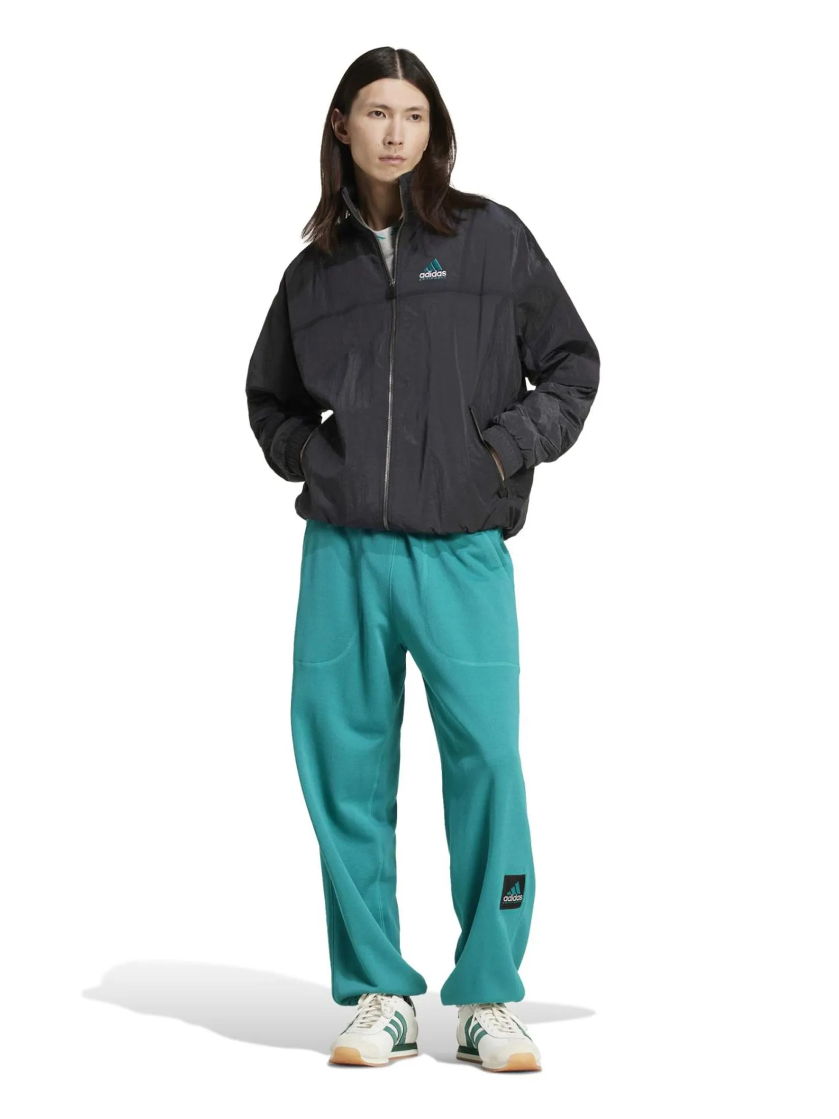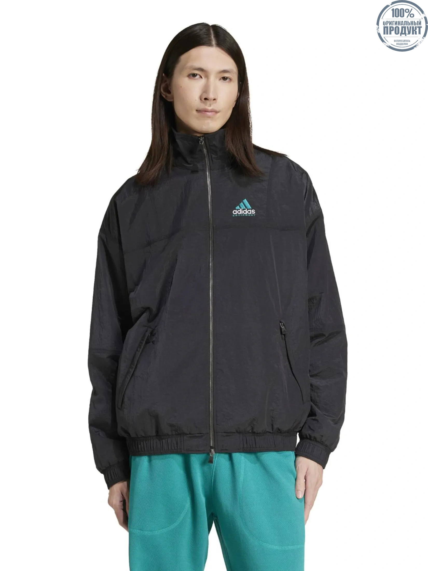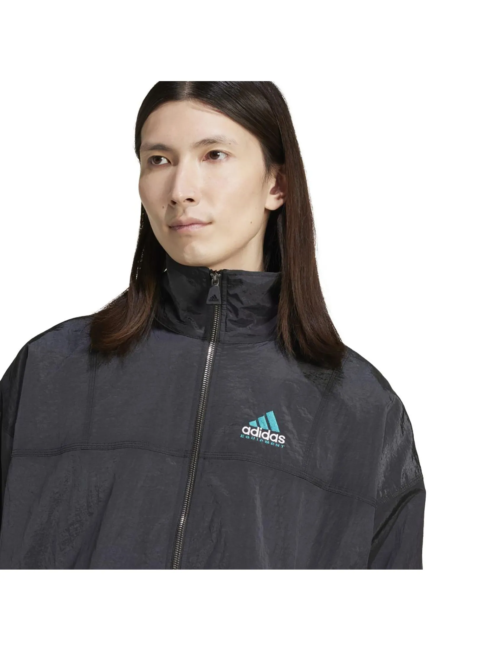 ADIDAS This adidas track top is a direct descendant of the '90s Equipment line, born from the idea of delivering only what's essential. It's made from smooth plain weave fabric with zippered pockets, and the simple design is accented with ribbed cuffs and the iconic adidas Badge of Sport Logo on the front and back. The loose shape with a two-way zipper creates a laid-back look with a retro vibe.