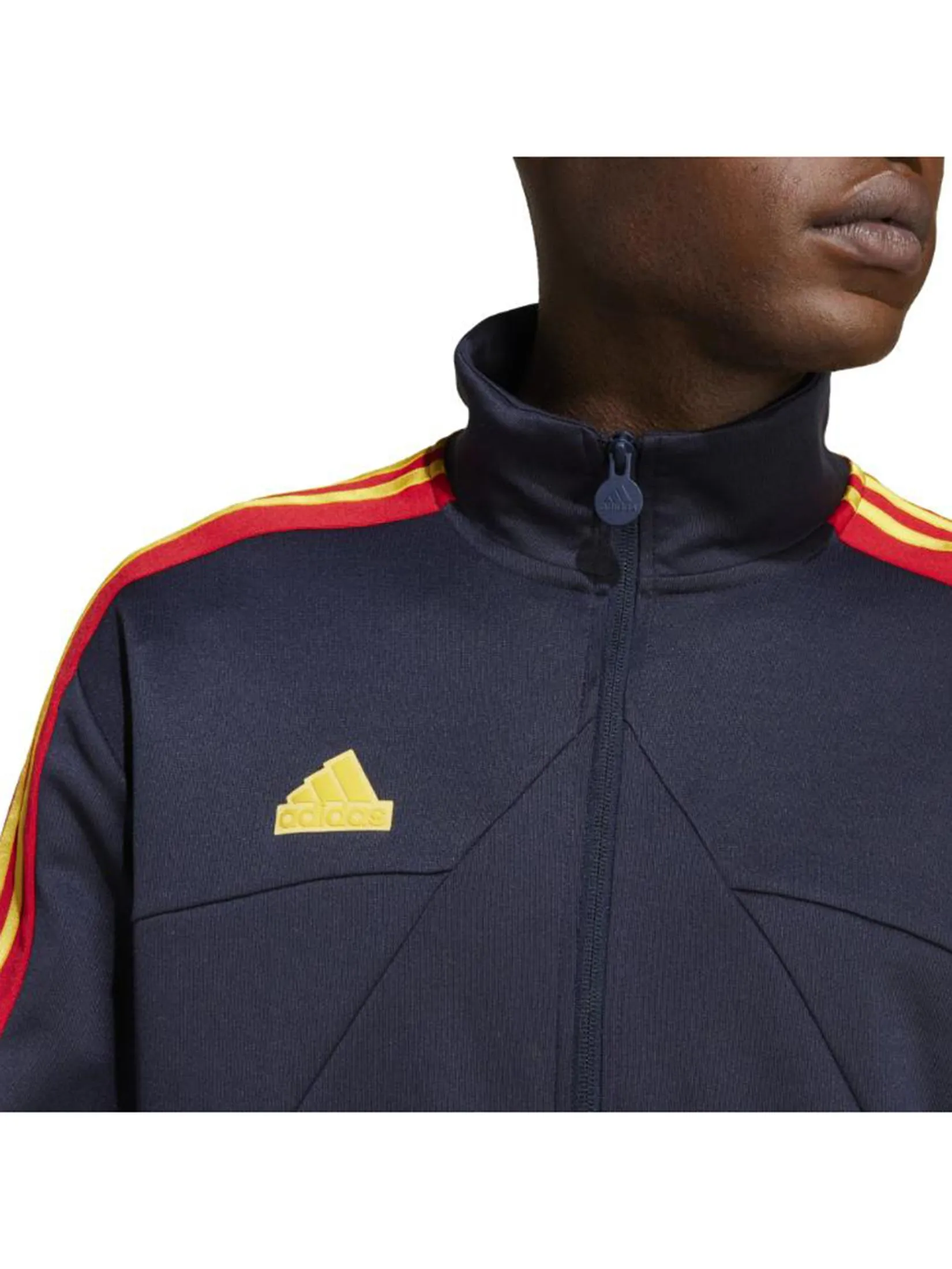Celebrate the camaraderie of football in this track jacket from ADIDAS. Inspired by the coming together of nations for championships, this eye-catching layer shows off a 3-Stripes design that pays tribute to national identities across the globe. Whether you're catching the match at a friend's house or cheering on your team from the stands, you'll stay cosy no matter what thanks to the interlock fabric and comfortable fit. By choosing recycled, we are able to reuse materials that have already been created, which helps to reduce waste. Renewable materials choices will help us to remove our reliance on finite resources. Our products made with a blend of recycled and renewable materials feature at least 70% total of these materials.