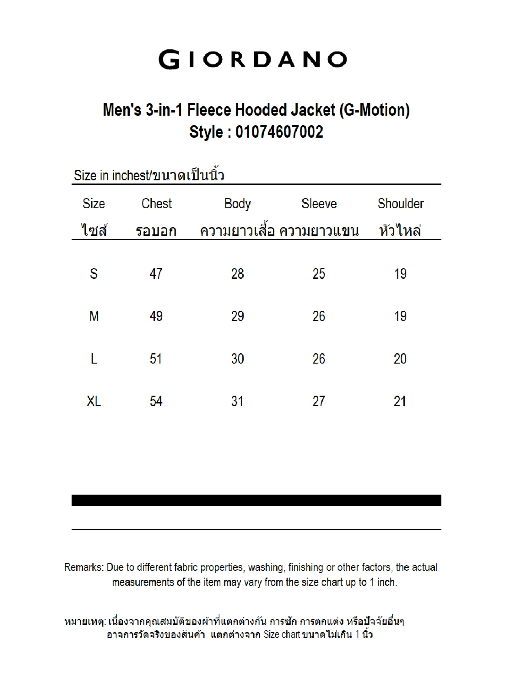 GIORDANO Men's 3-in-1 Fleece Hooded Jacket (G-Motion) Silvery Moon x Black