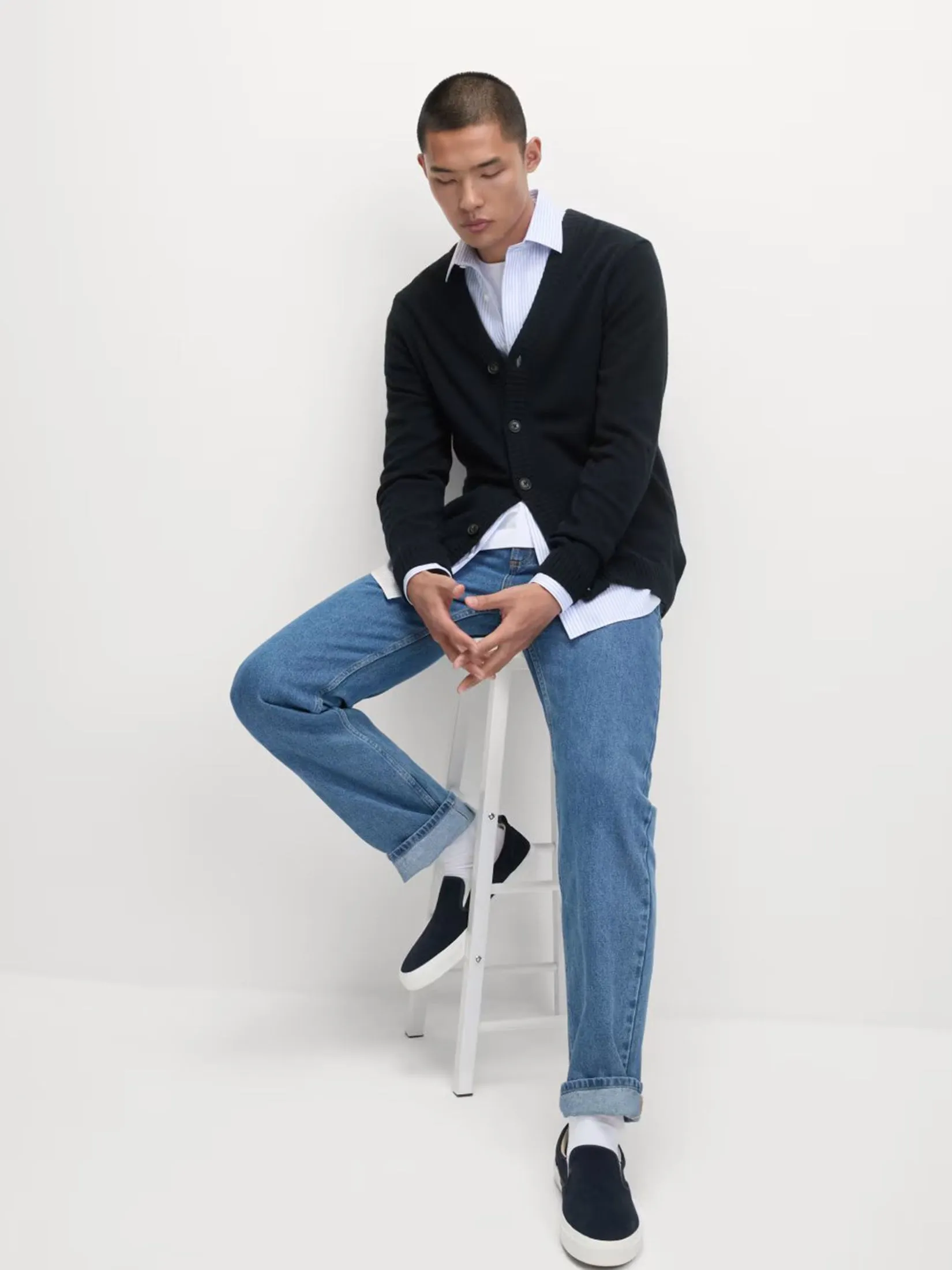 Men Cardigan Extra Fine Lambswool Rich V-Neck Cardigan