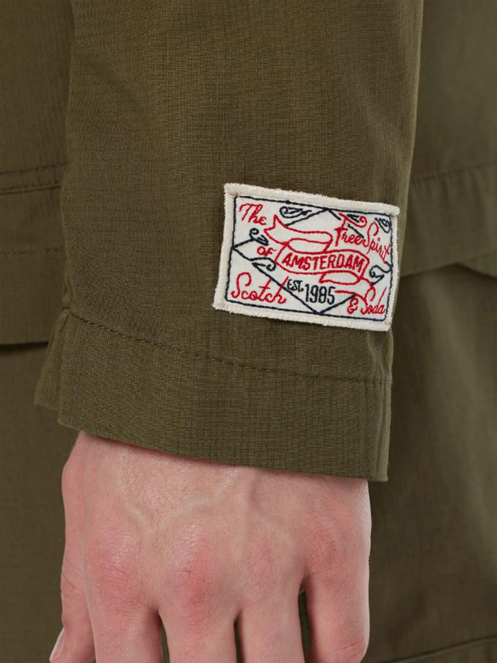 SCOTCH&SODA Men Blazer Relaxed Fit Unconstructed Cotton-Ripstop Military Classic Green