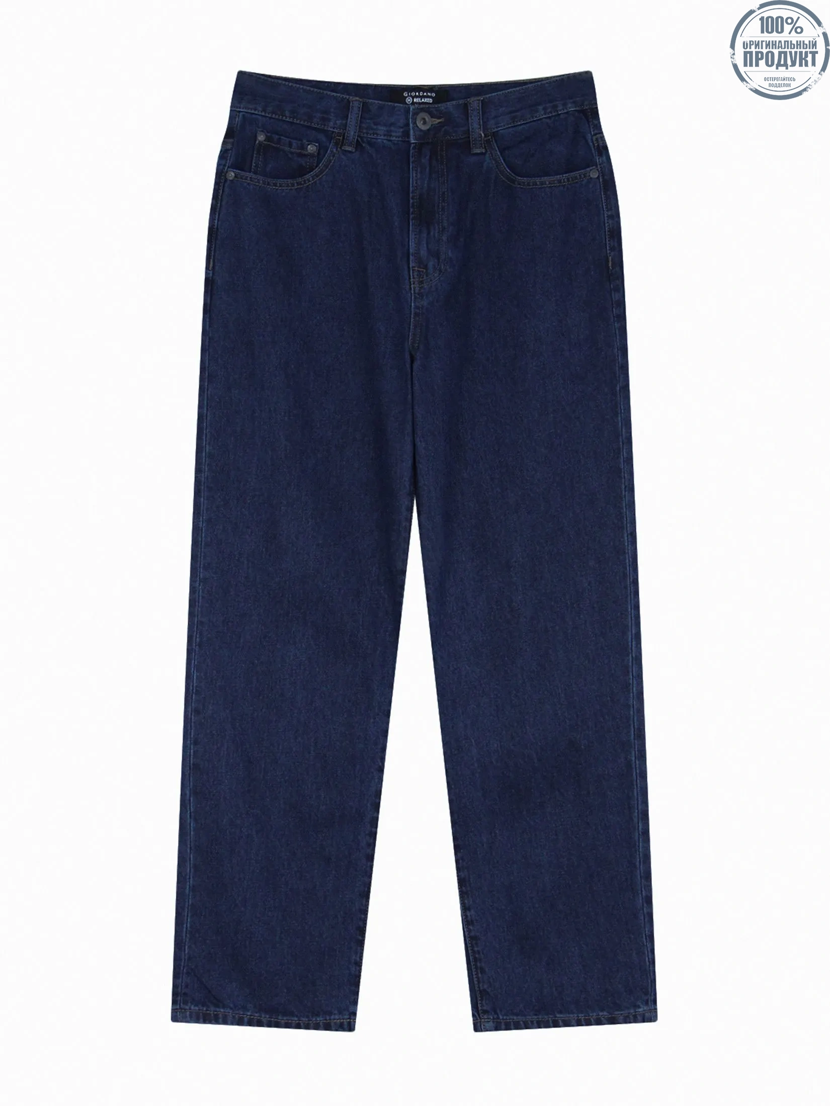 GIORDANO Men's Relaxed Denim Jeans (180° Elastic Waist) Dark indigo