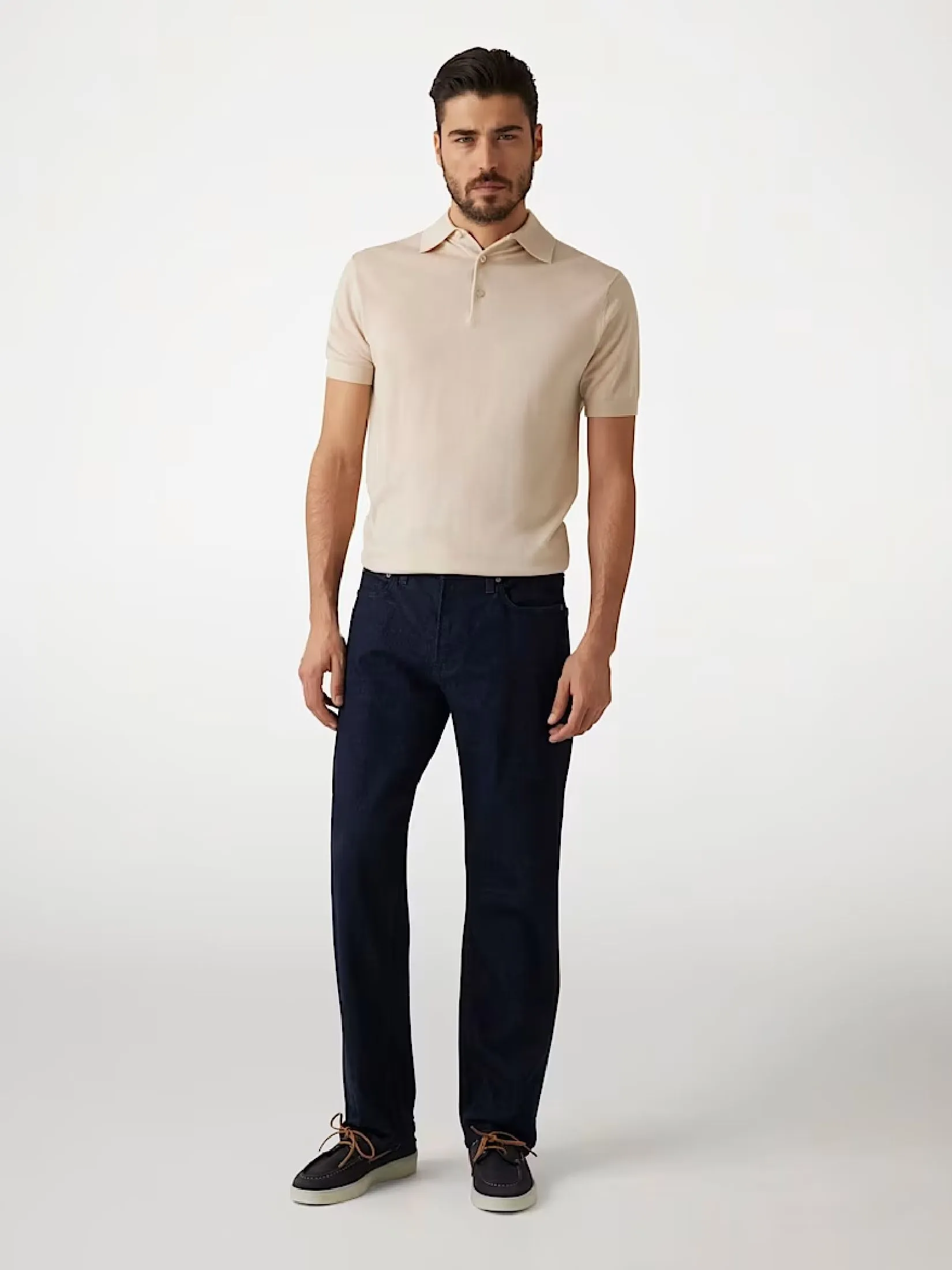 Step into style with our must-have men's jeans featuring recycled cotton fibers. Dive into the comfort of stretch denim, perfectly crafted for a relaxed fit with a mid-rise waist. The iconic triangle logo patch adds a modern touch. Ideal for casual outings, pair with loafers to enhance your look.