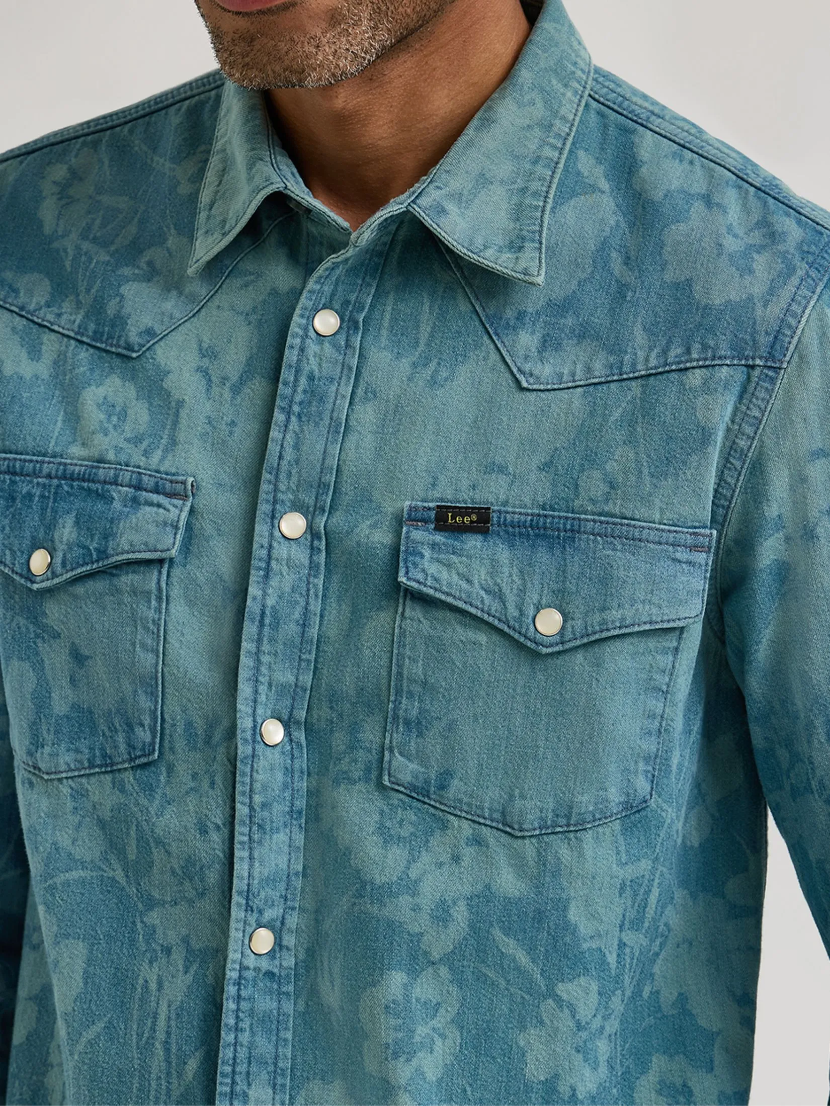 LEE Men's Denim Shirt Long Sleeve Lee + Paul Smith Collection Regular Fit Mid Indigo