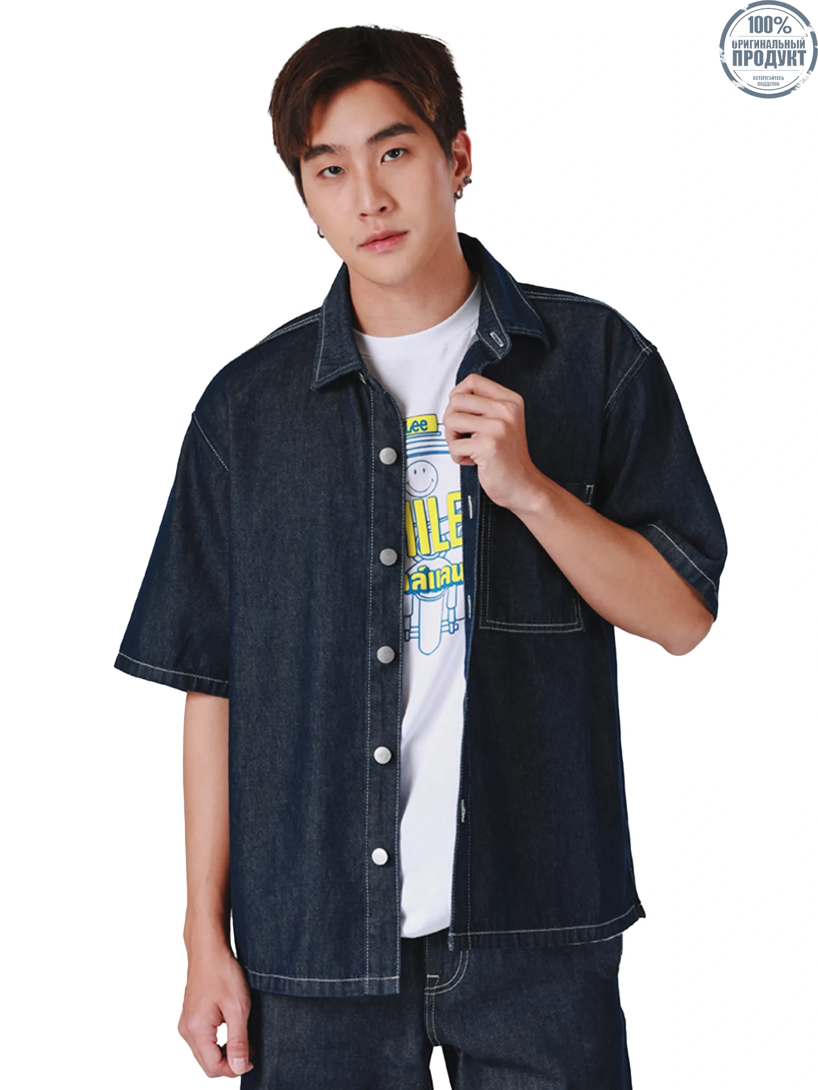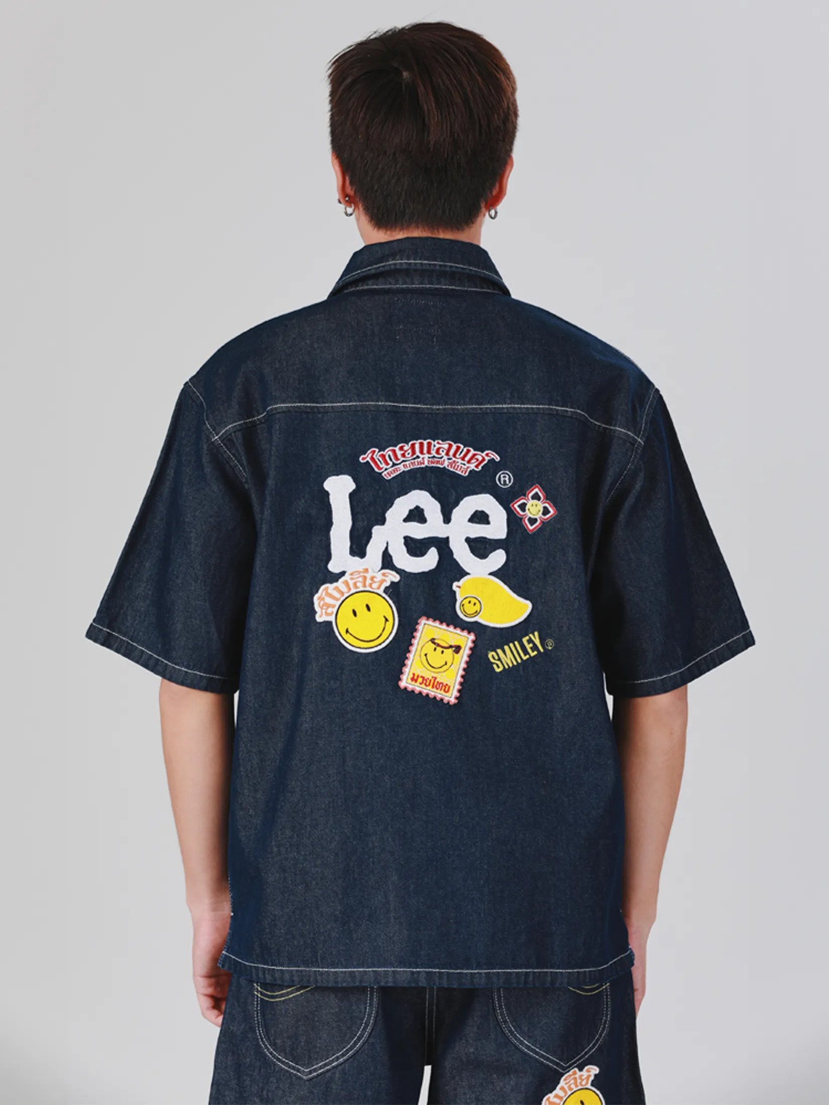 Comfort Fit Men s Short Sleeve Shirt comes with Dark Indigo color. From Lee Smiley Made from 100% Cotton, providing comfortable and cooling but also very durable, The design features the Lee logo alongside the Smiley icon and retro