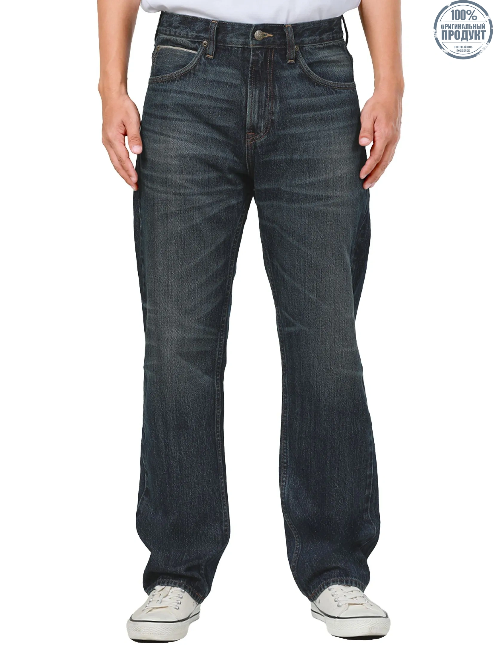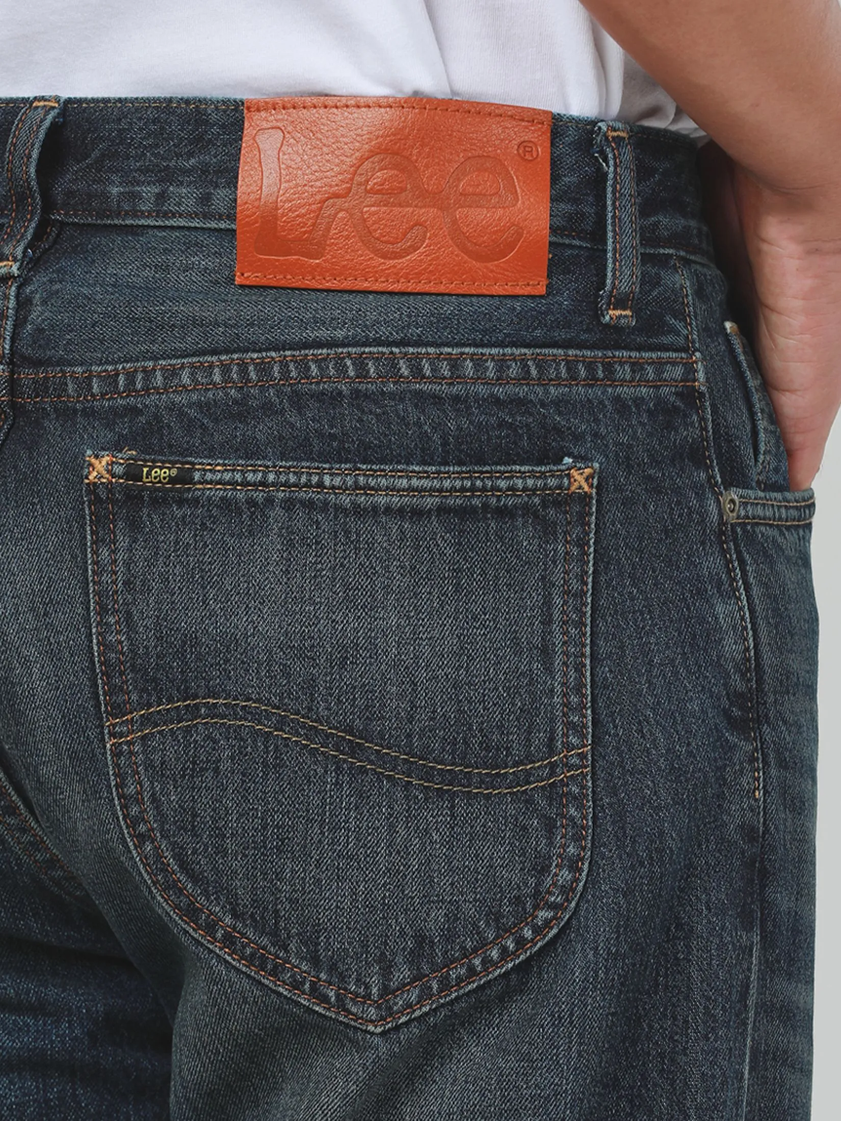Dean Fit Men's Jeans, mid waist regular with Mid Indigo color. From Lee Riders Collection. Made from 100%Cotton (13 Oz.), which is a durable fabric and has weather-proof, The legendary denim returns with Lee Riders, now featuring special vintage-inspired leather patches and a unique corner label on the bag. Comes with an exclusive Flasher tag and custom Lee Riders print inside the bag for a one