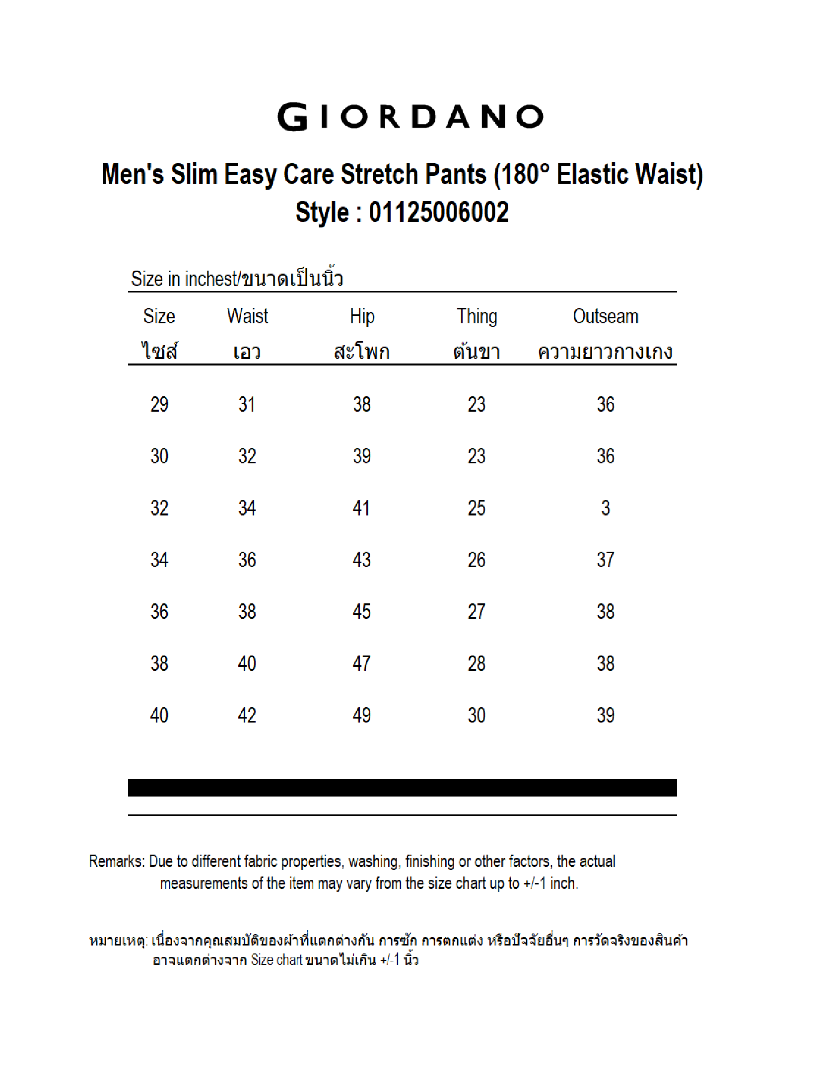 GIORDANO Men's Slim Easy Care Stretch Pants (180° Elastic Waist) Black
