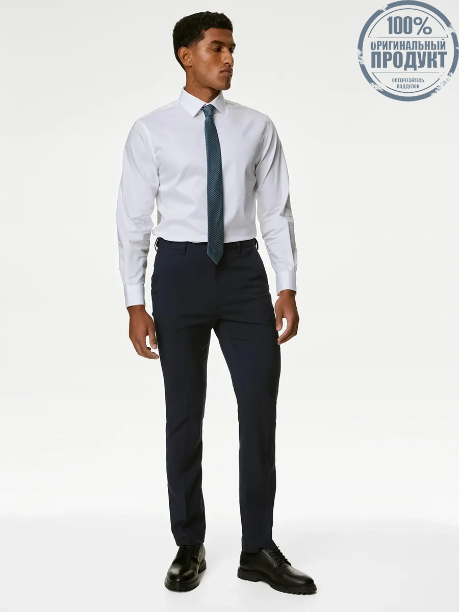 MARKS & SPENCER Men Trousers Regular Fit Stretch F0_Navy