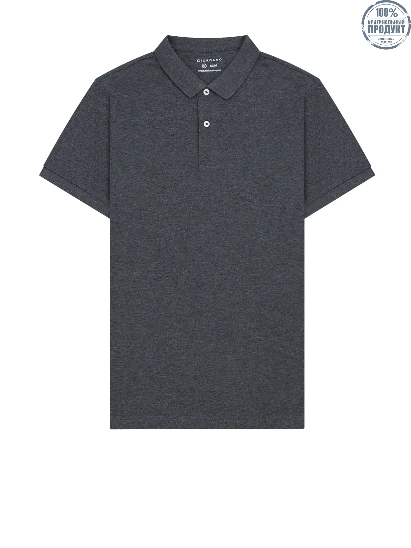 GIORDANO Men's Cotton Lycra Solid Polo Melange Dark Grey