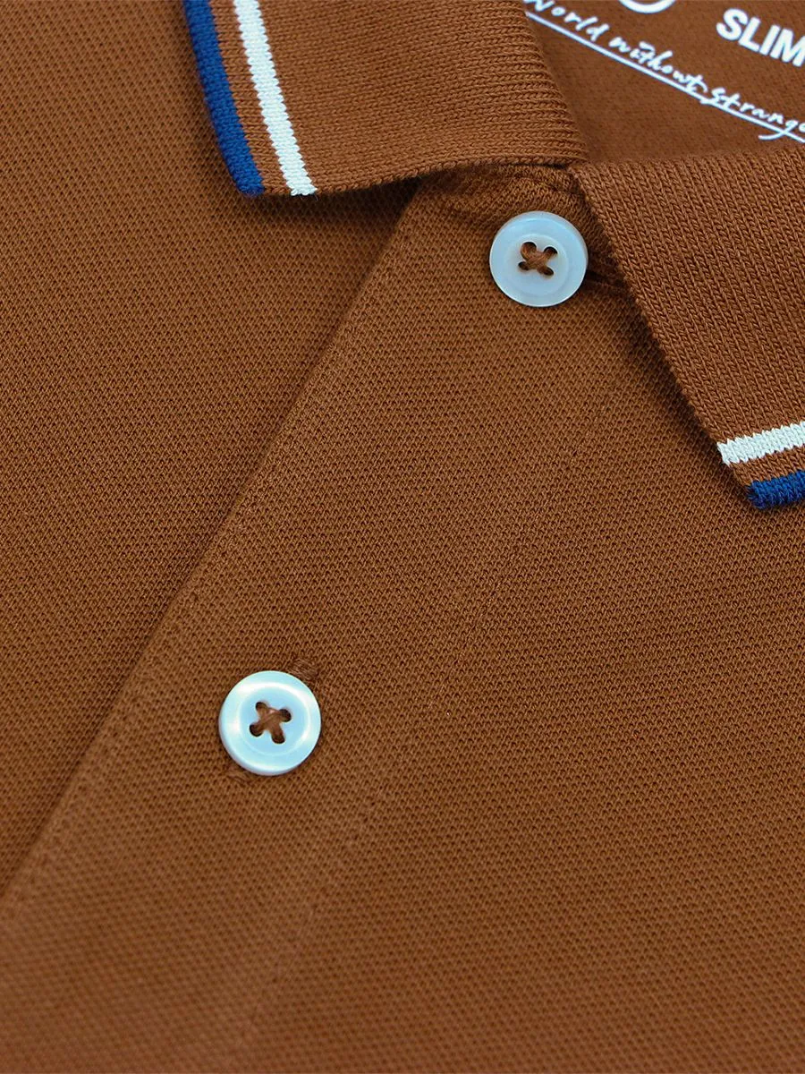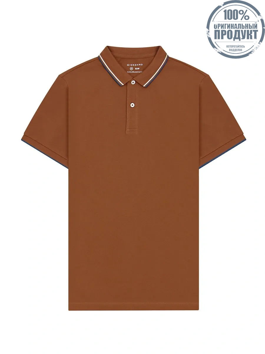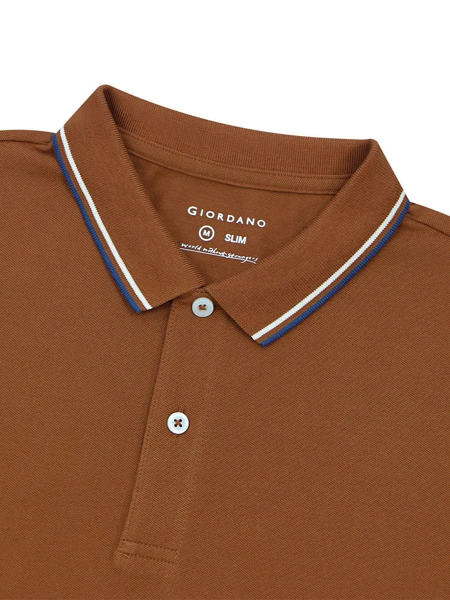 GIORDANO Men's Cotton Lycra Solid Polo Mocha bisque brown