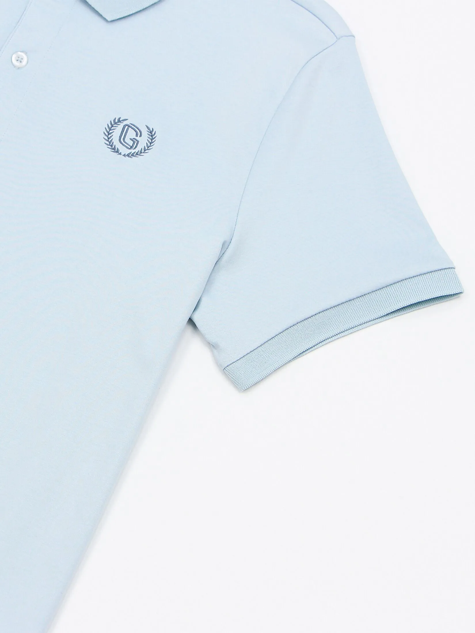GIORDANO Men's Interlock Embroidery Polo (Liquid Touch) Winter sky blue