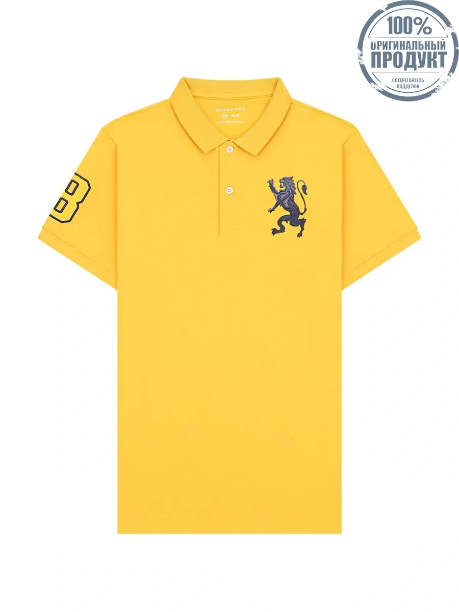 GIORDANO Men's Lycra Pique Embroidery Polo (3D Lion) Daffodi yellow