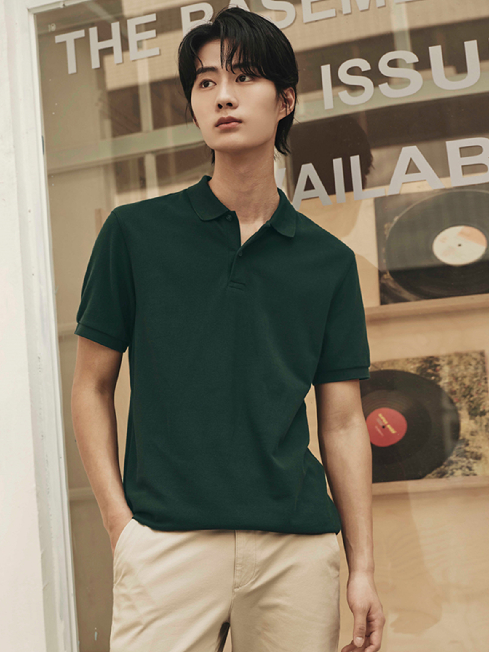 GIORDANO Men s Online Exclusive Pique Polo Shirt (Korea) Dark Green