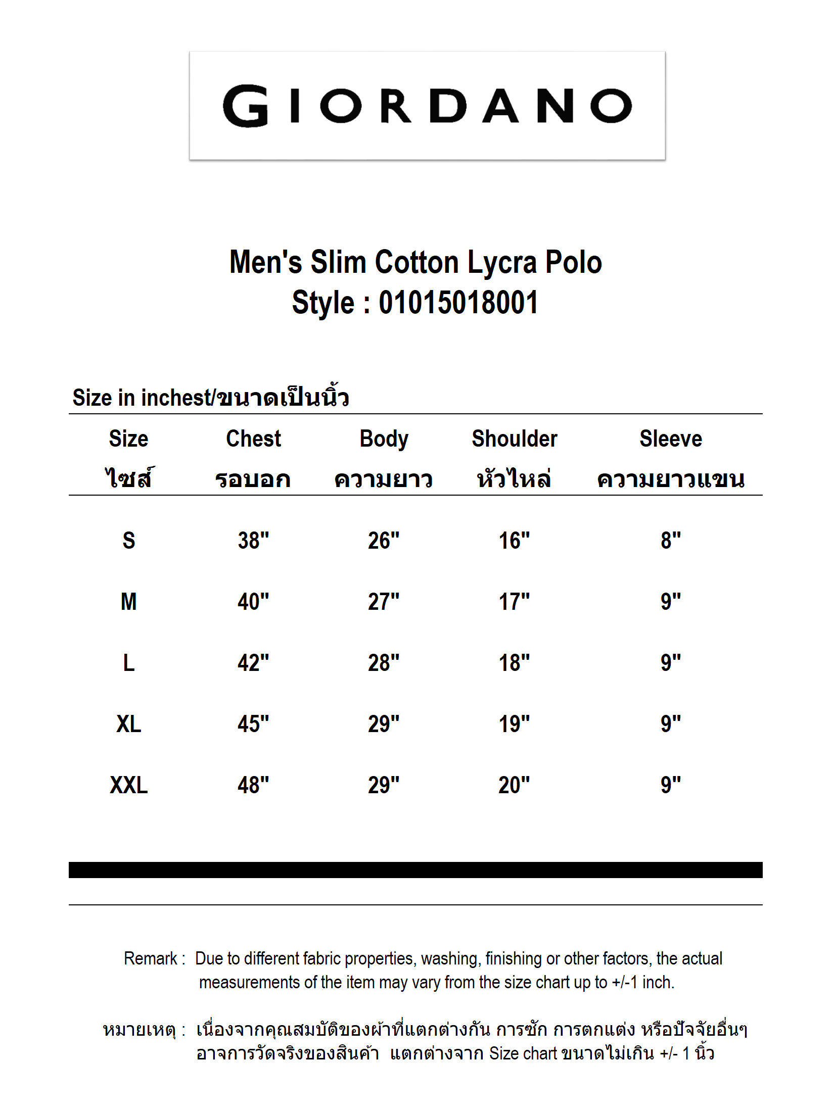 For returns of Giordano Thailand Official brands, a tax invoice/receipt must be attached. and always complete products condition with a price tag , if there is no receipt, the product cannot be returned in any case