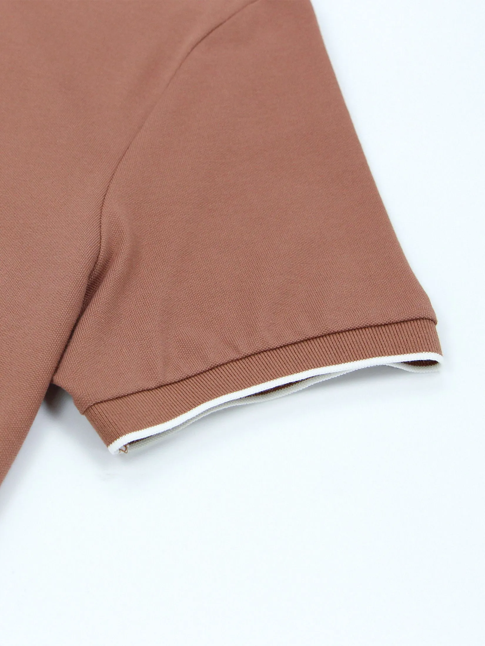 GIORDANO Men's Slim Cotton Lycra Polo Russet brown