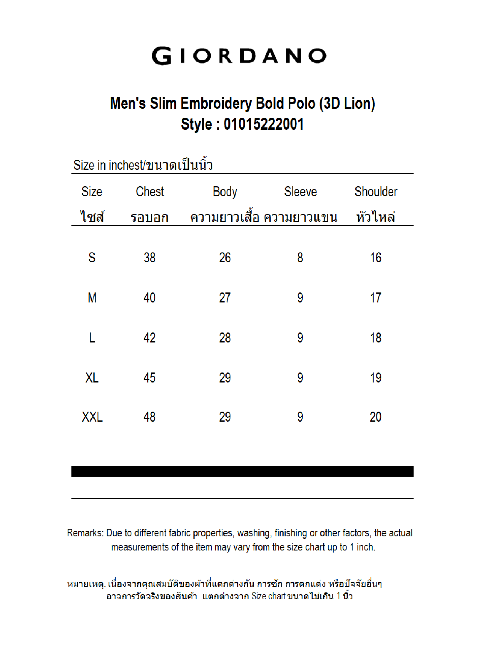 For returns of Giordano Thailand Official brands, a tax invoice/receipt must be attached. and always complete products condition with a price tag , if there is no receipt, the product cannot be returned in any case