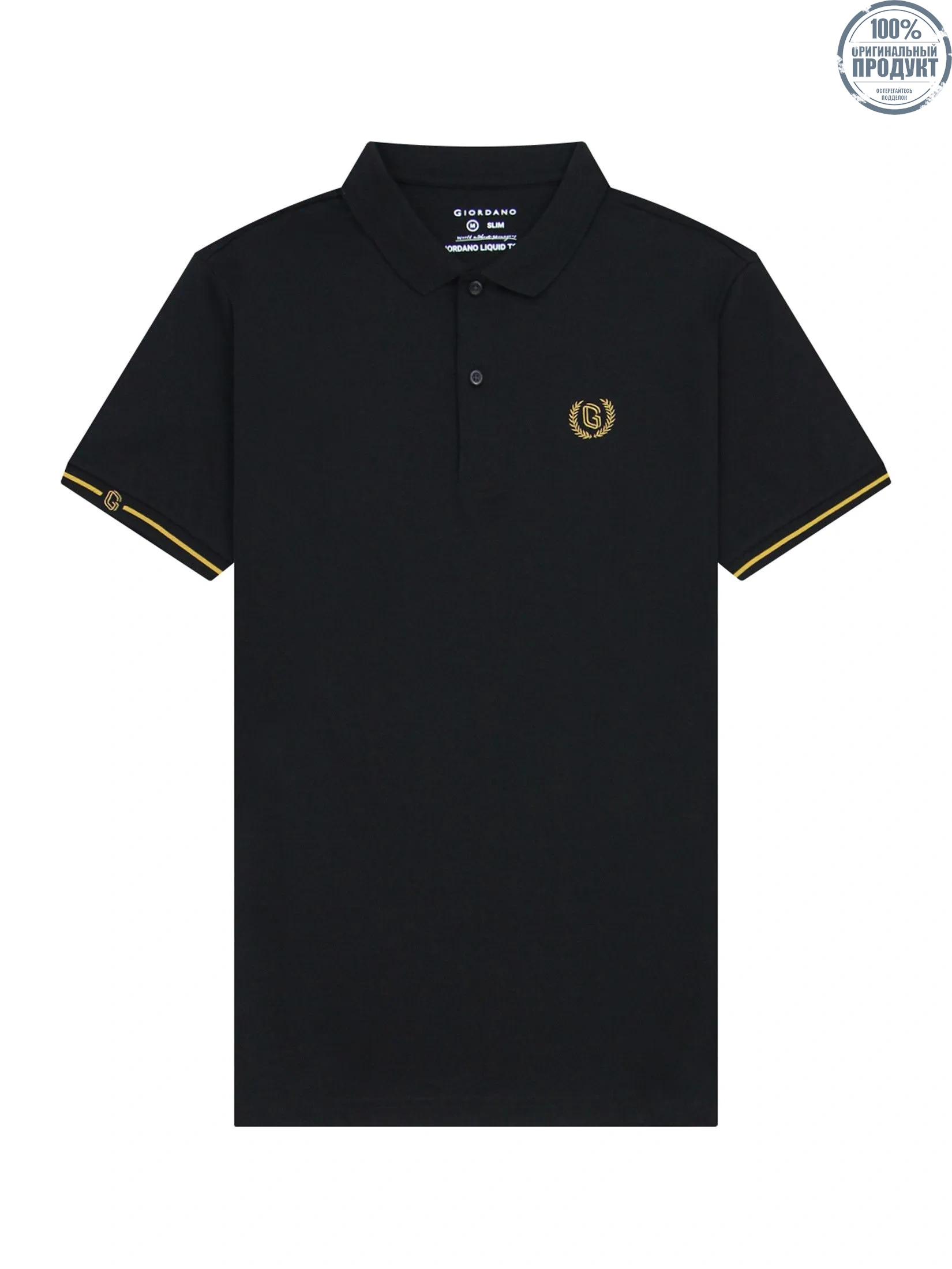 GIORDANO Men's Slim Interlock Plain Polo (Liquid Touch) Signature Black