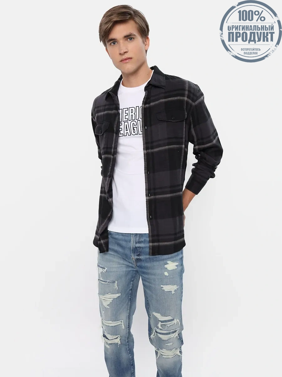 American Eagle MEN CF AVERY PLAID SALVADOR TWILL FLANNEL 044 DARK GRAPHITE