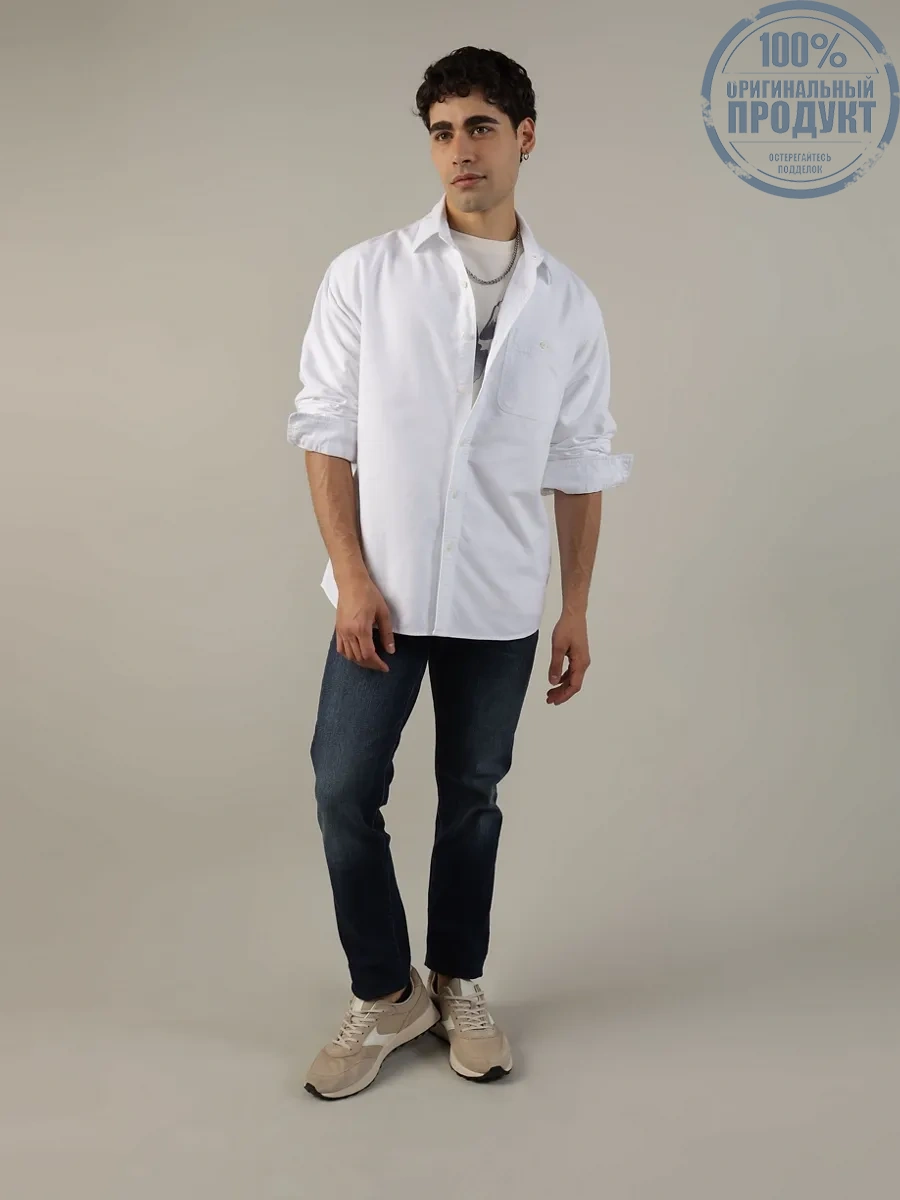 American Eagle MEN OVERSIZED CSC YD OXFORD SHIRT 100 WHITE