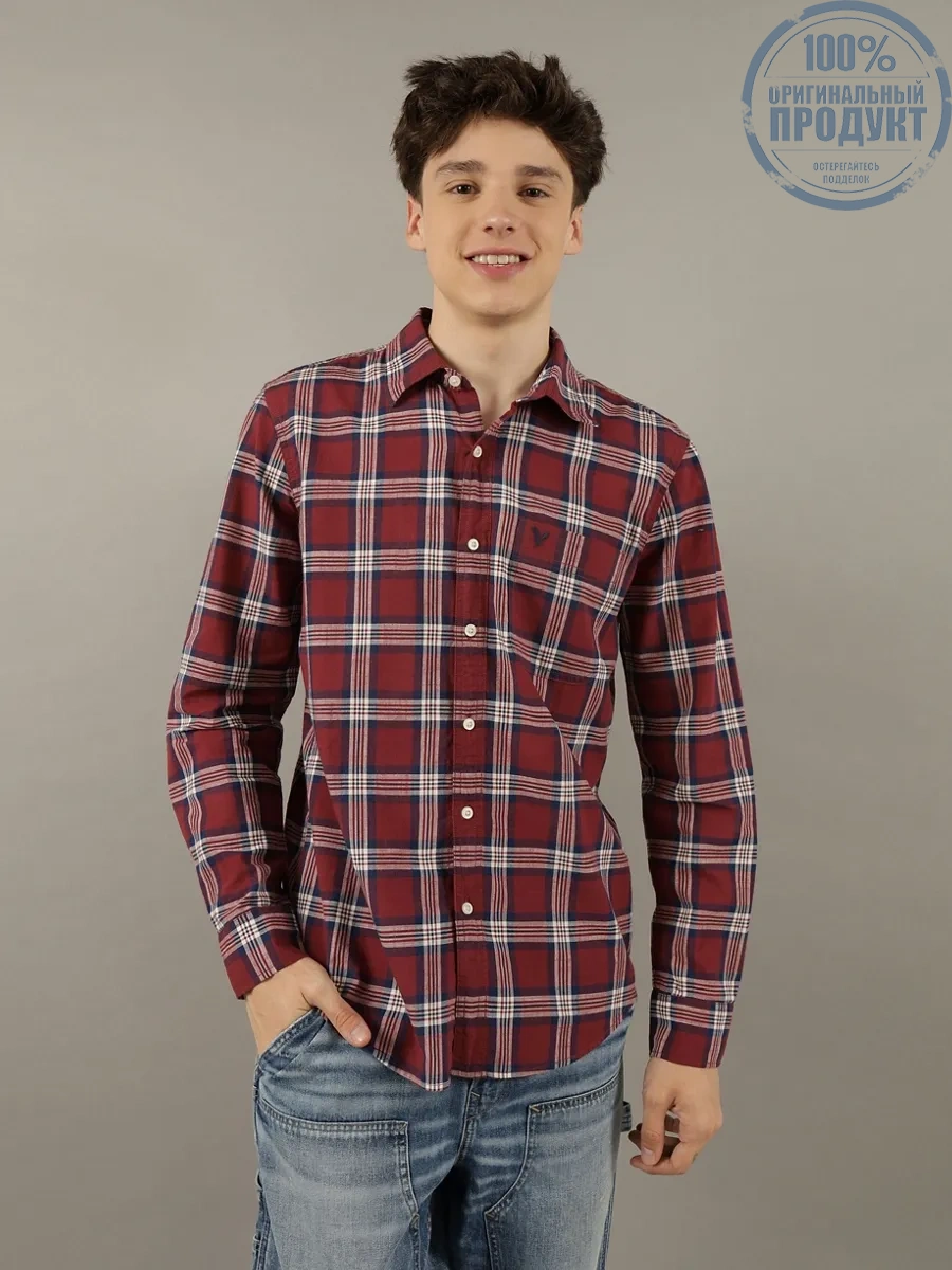 American Eagle MEN SF CSC ANTHONY PLAID MADRAS SHIRT 613 BURGUNDY