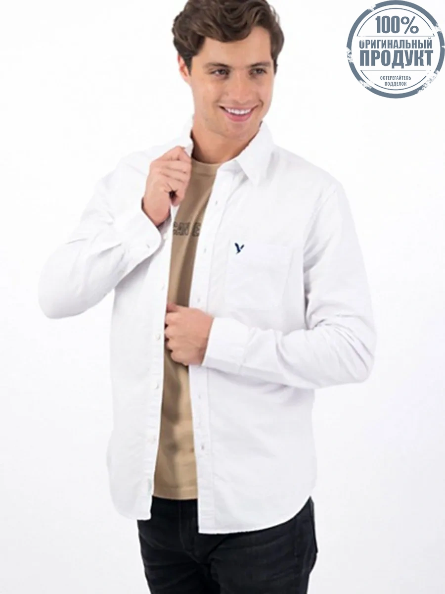 American Eagle Shirt Solid Oxford W Eagle 5153 Solid Oxford 100 White