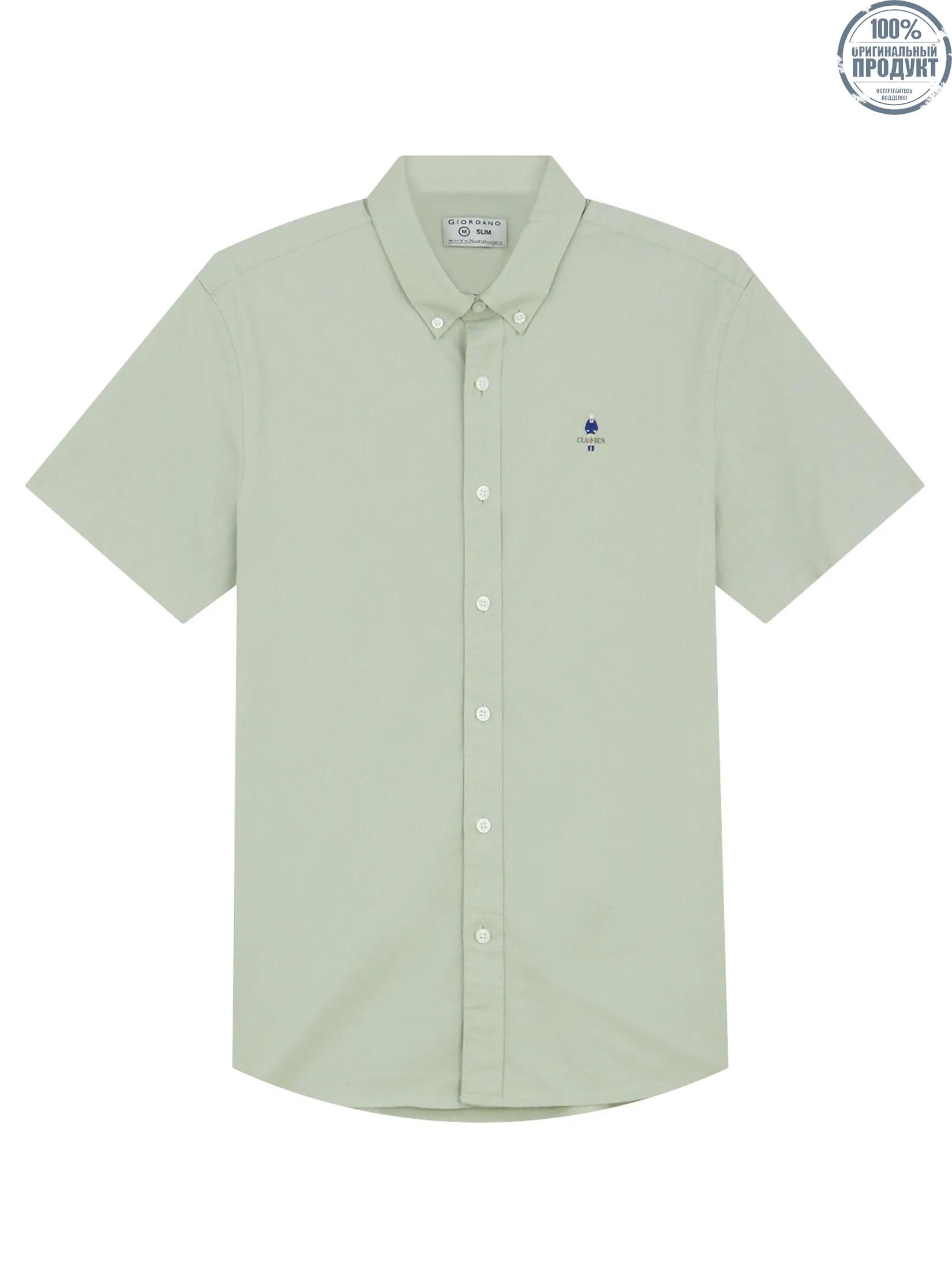 GIORDANO Men's Slim Embroidery Stretch Oxford Shirts (Classic Man) Aqua Gray green