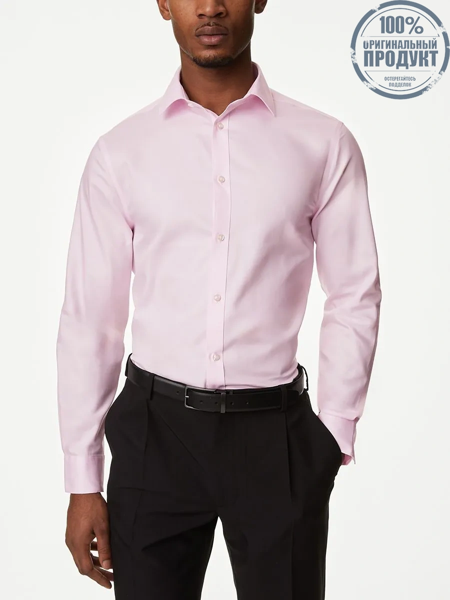 MARKS & SPENCER Men Shirt Slim Fit Non Iron Pure Cotton Light Pink