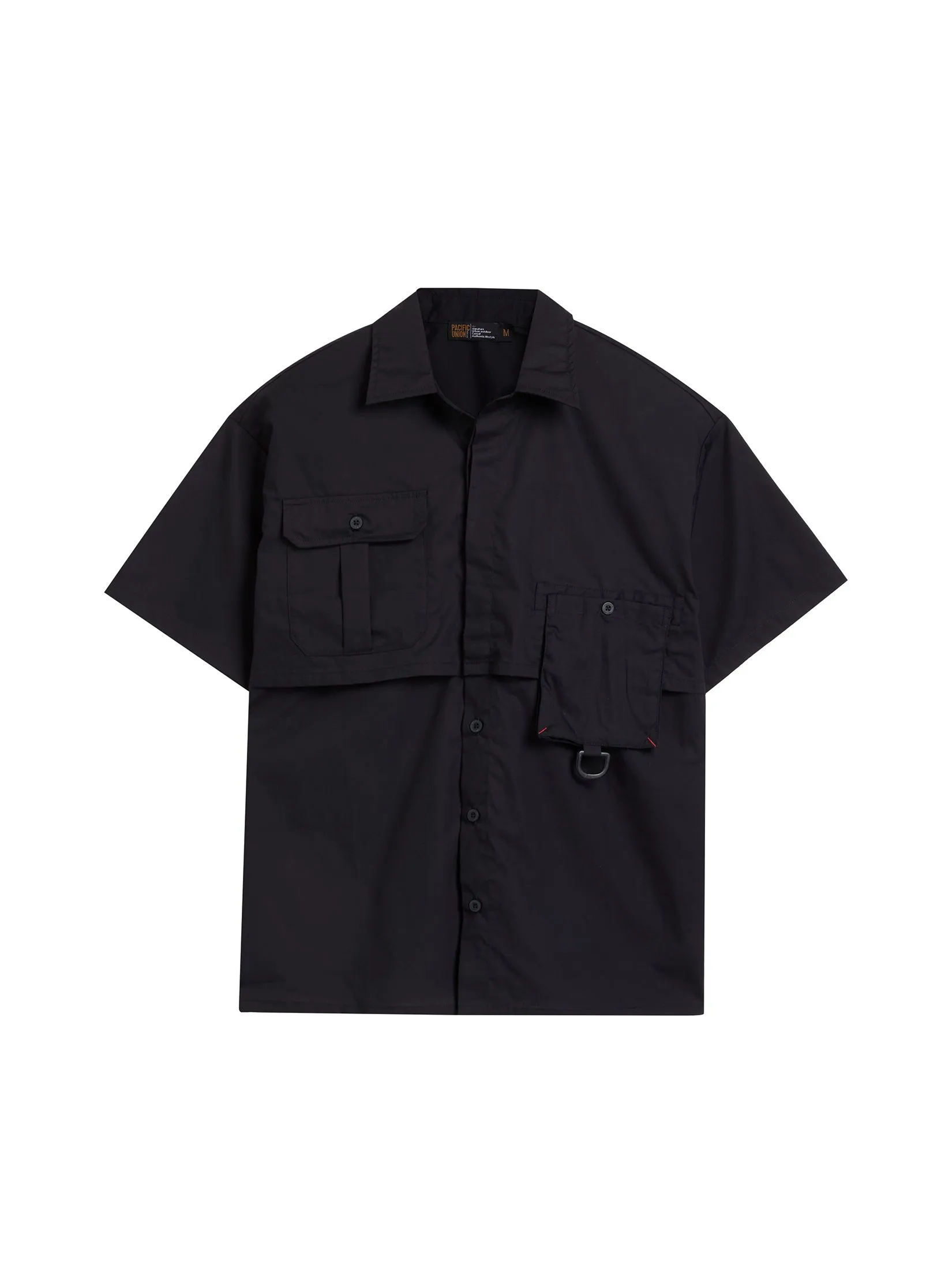 PACIFIC UNION Men Shirt Short Sleeves with Pockets Relaxed Fit Black