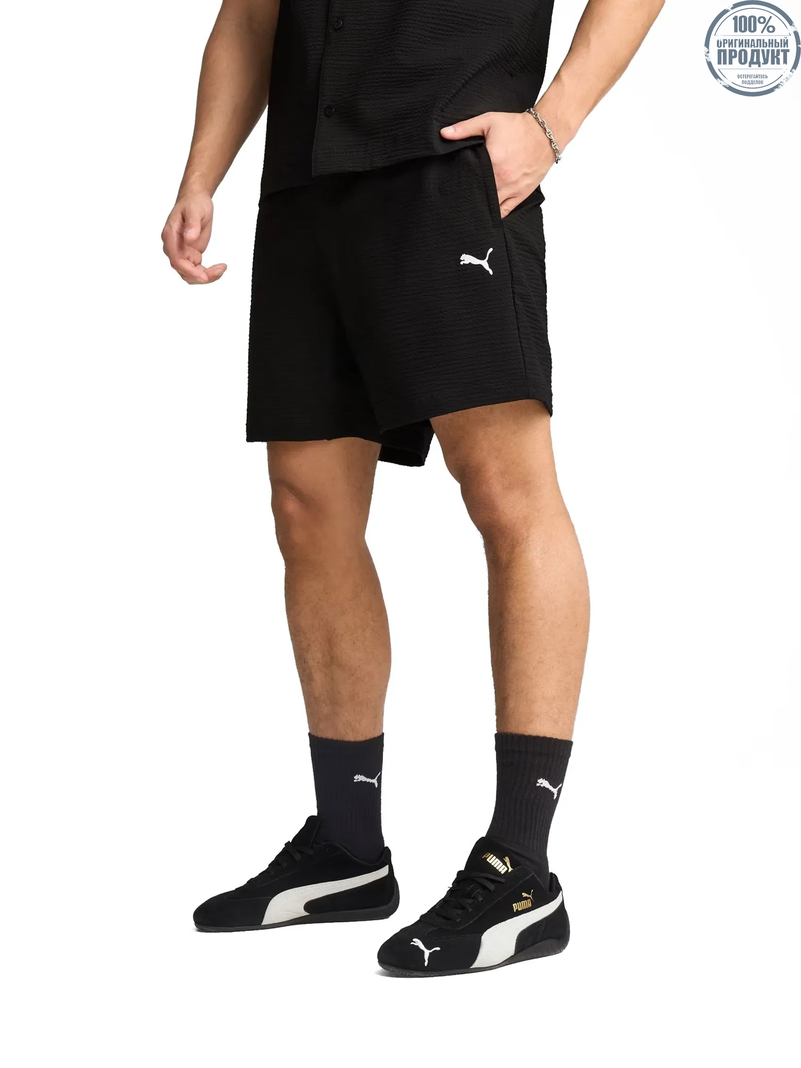 PUMA Men Shorts 6" Wardrobe Essentials Seersucker Relaxed Shorts PUMA Black