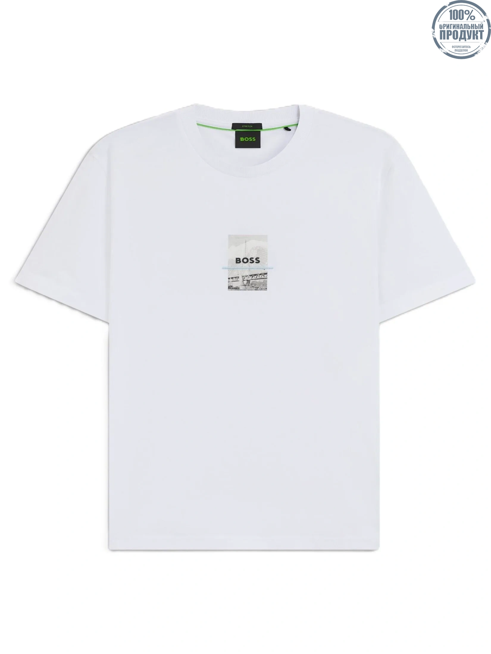 Featuring intricate photo artwork with raised and embroidered lines, this relaxed-fit BOSS Menswear T-shirt creates fresh style. Comfortable stretch cotton. Crew neckline.