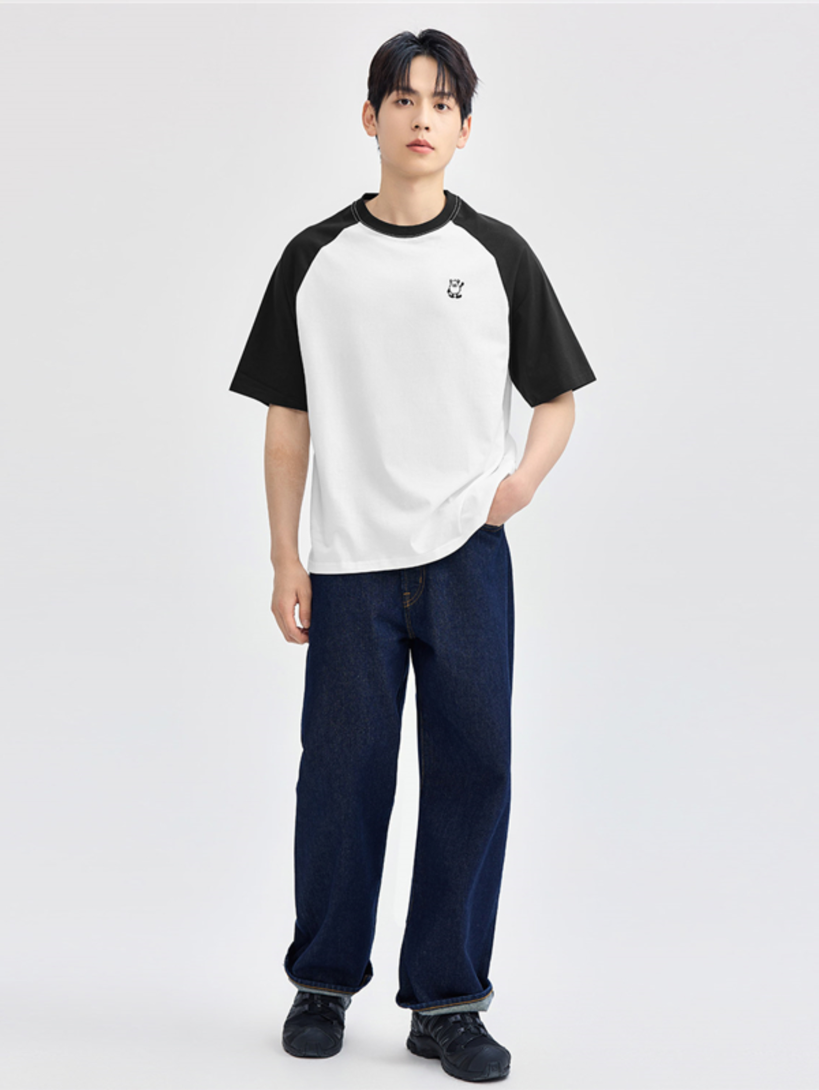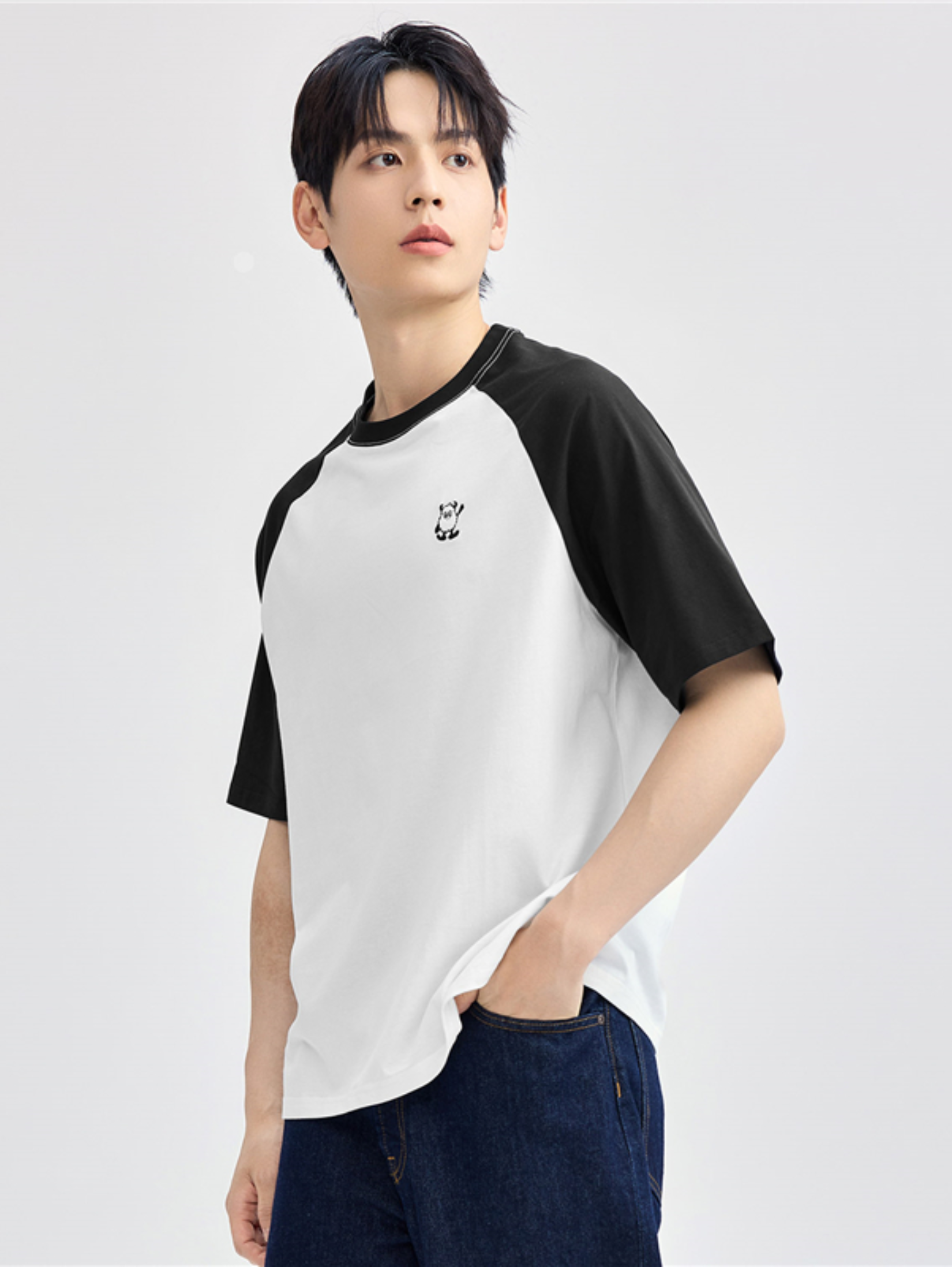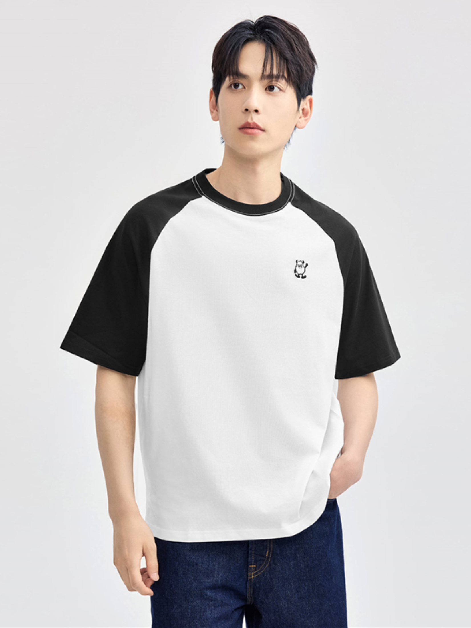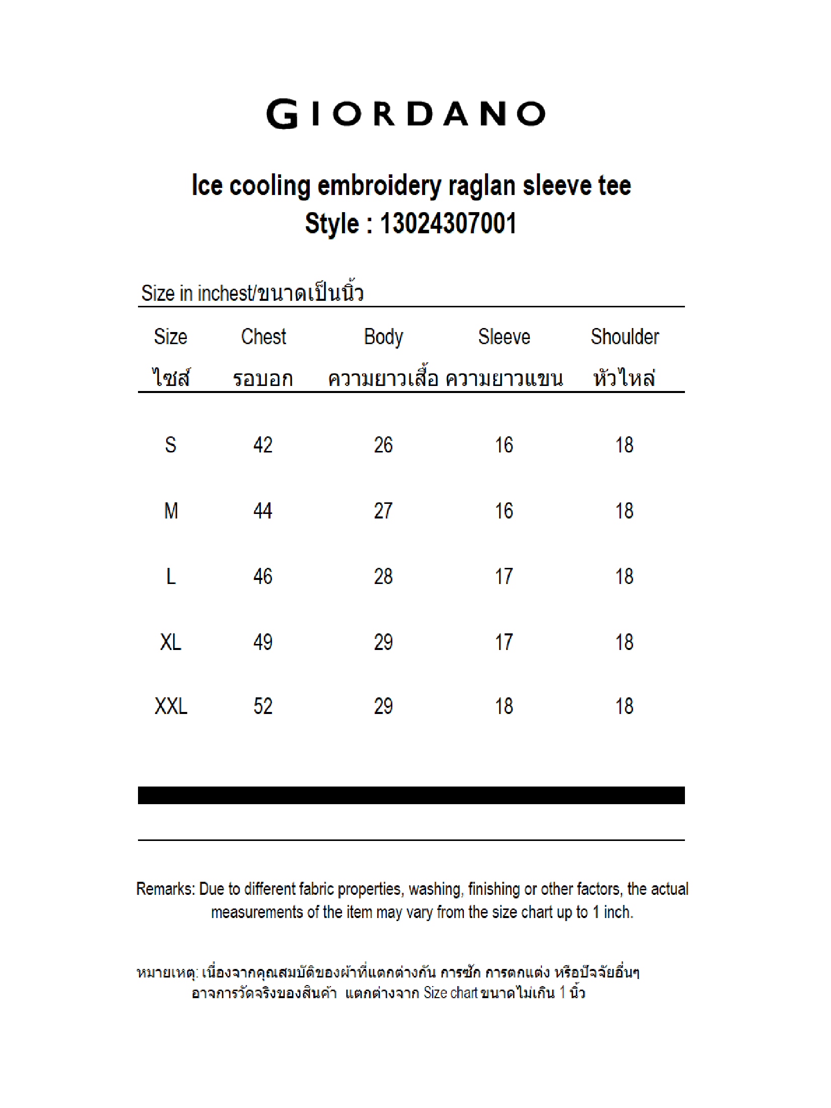GIORDANO Men's Ice cooling embroidery raglan sleeve tee White Black