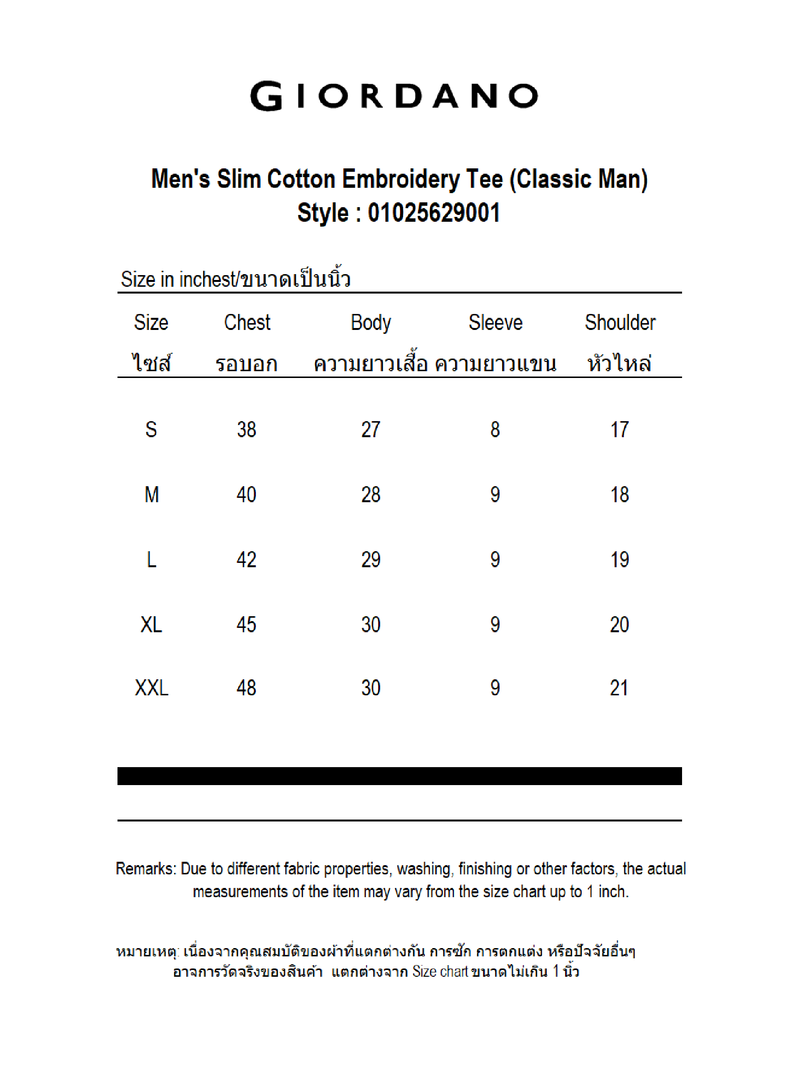For returns of Giordano Thailand Official brands, a tax invoice/receipt must be attached. and always complete products condition with a price tag , if there is no receipt, the product cannot be returned in any case