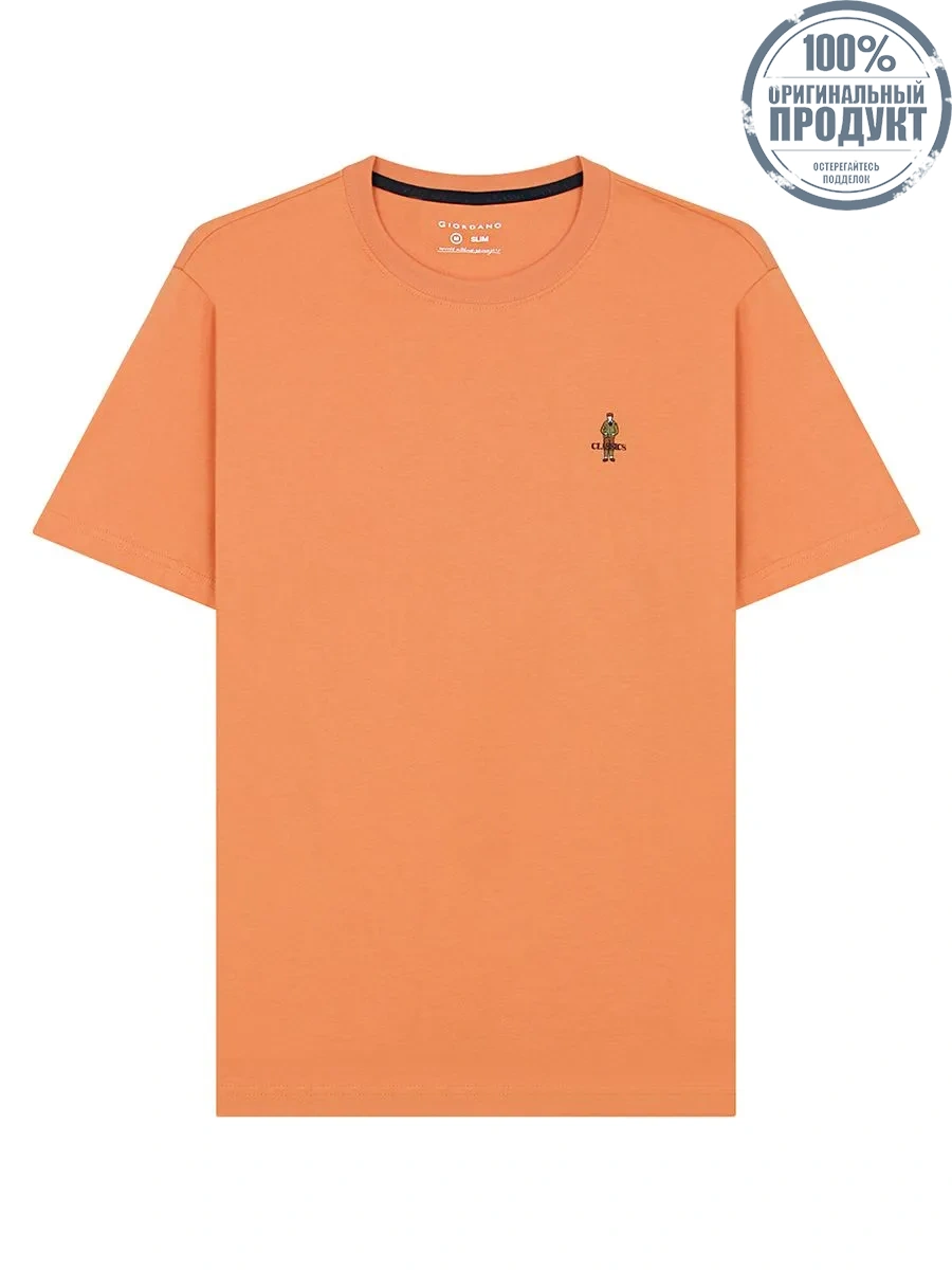 GIORDANO Men's Slim Jersey Embroidery Tee (Classic Man) Coral Gold Orange