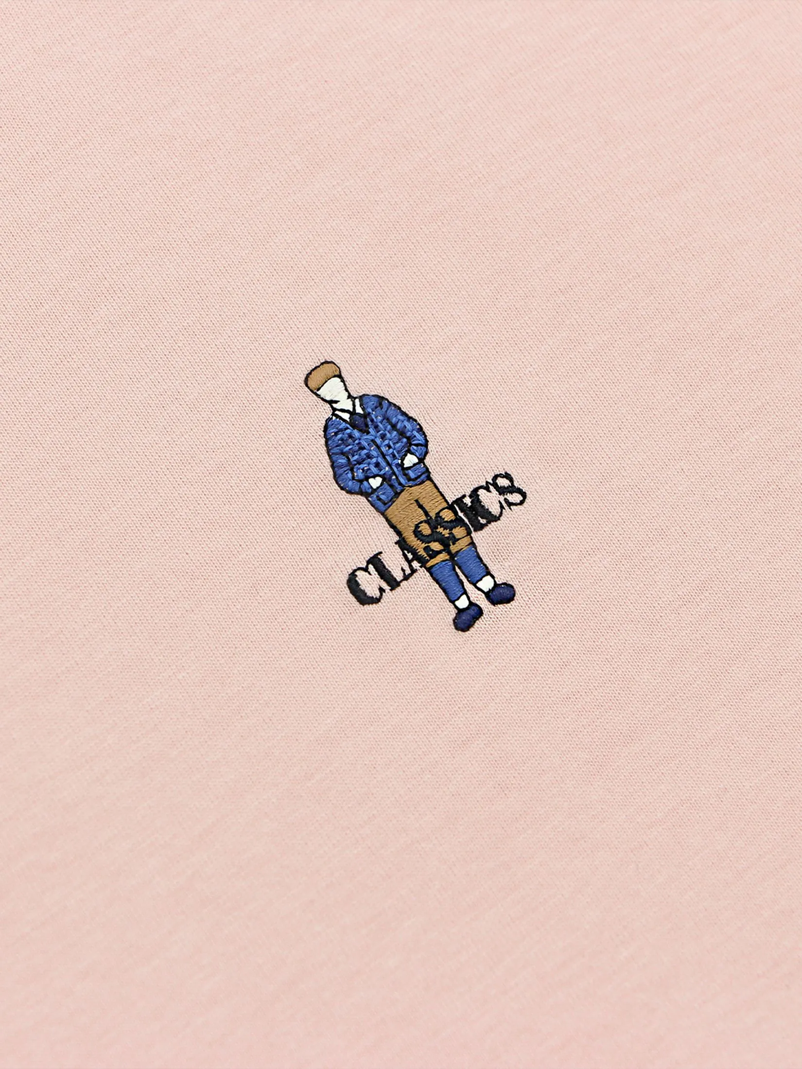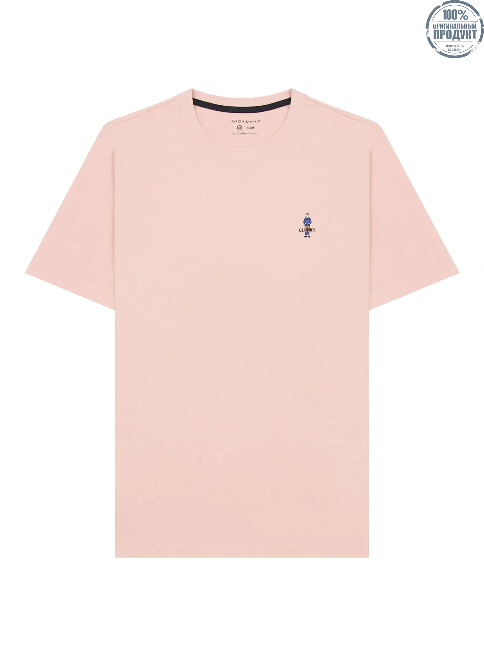 GIORDANO Men's Slim Jersey Embroidery Tee (Classic Man) Evening Sand [Pink]
