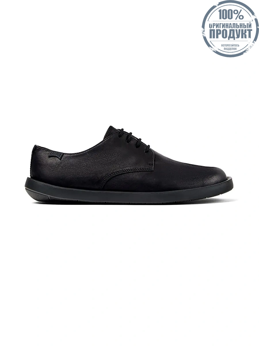 Black leather men's bluchers with lace closures, leather linings, cushioning recycled OrthoLite® footbeds, and XL EXTRALIGHT® EVA outsoles.