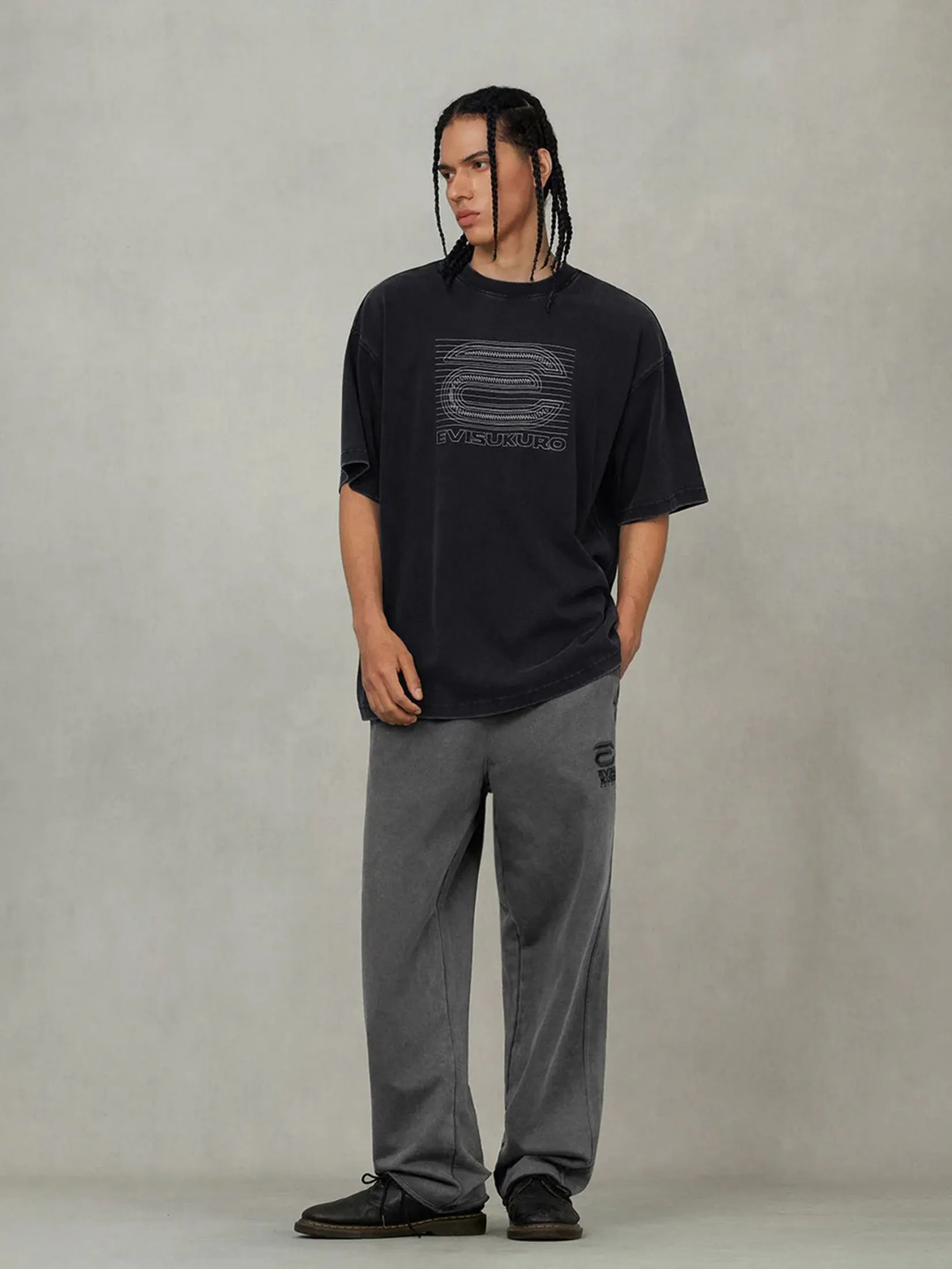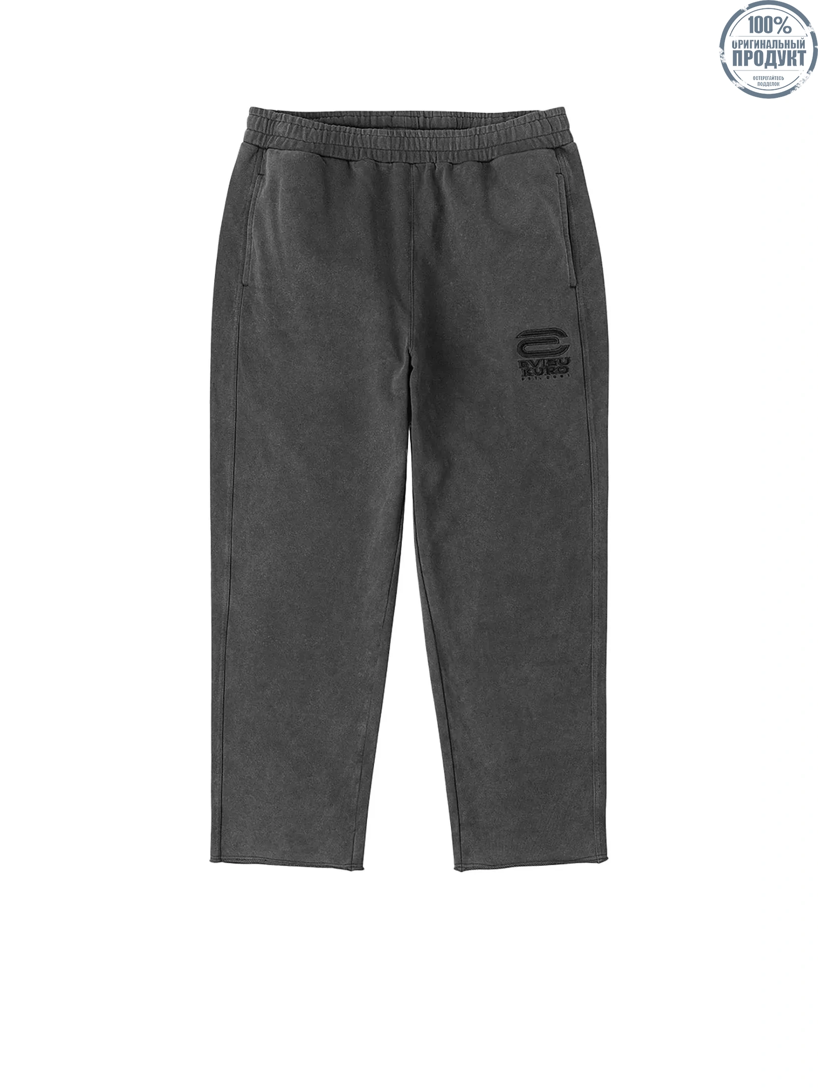 EVISU Men Sweatpants EVISUKURO E Embroidery Distressed Loose Fit Black