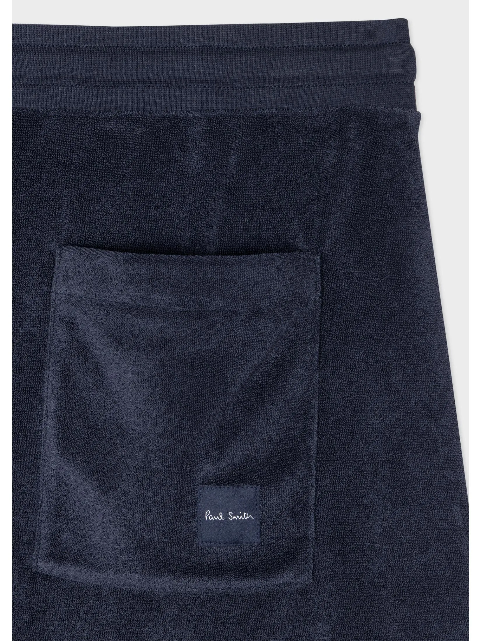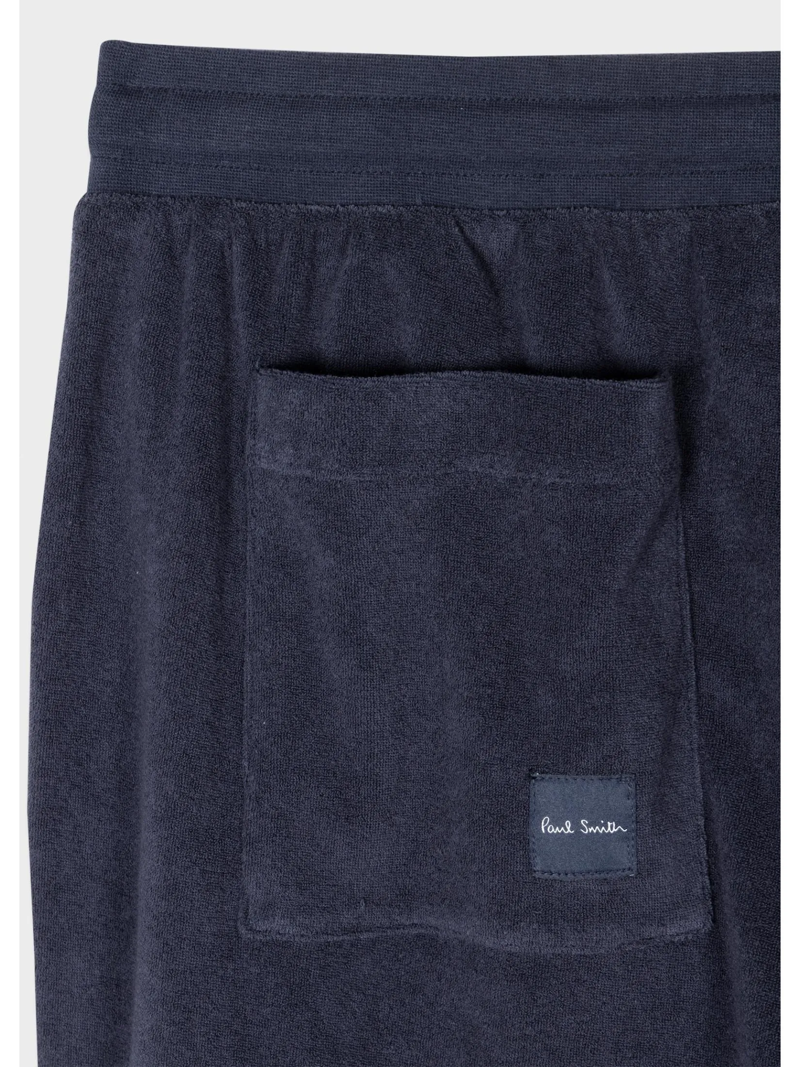 • Cut from a cotton-blend towelling cloth for a soft and textured finish, these navy blue lounge shorts feature our classic 'Artist Stripe' tape down each leg. Finished with a drawstring adjustable waist and a rear patch pocket.
