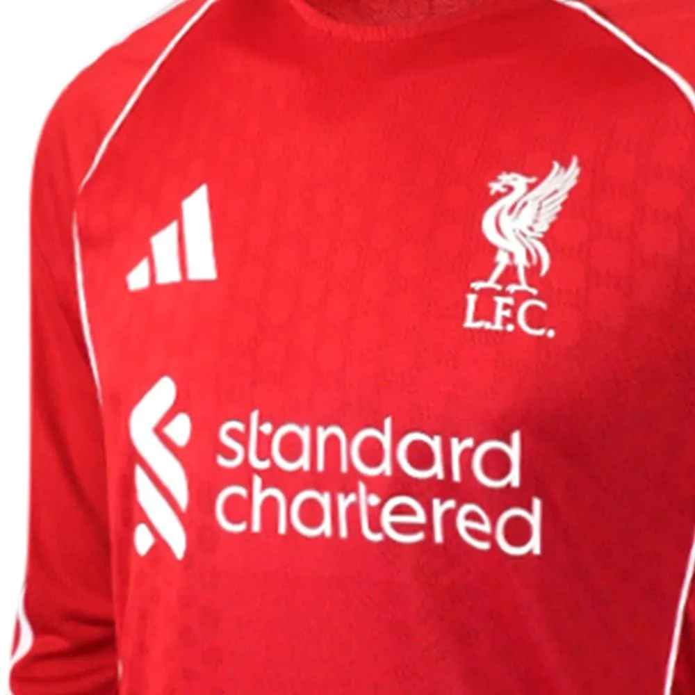 Welcome home, Reds. Liverpool FC and adidas have always been the perfect team. Kicking off their third spell together, this ADIDAS Men's Liverpool FC Home Authentic 2025/26 Long Sleeve Jersey brings some real mid-'00s football vibes with a clean, crisp look framed by white piping. Created for stirring Anfield performances, it's the shirt the players wear on match days. Perched proudly on the chest, a Liver Bird badge brings hope to every fan's heart.