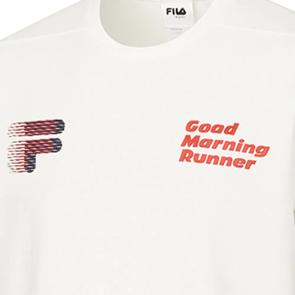 The FILA FS2RSH0046X Men's Training T-Shirt offers optimal comfort and style for your workouts. Featuring a prominent "Good Morning Runner" graphic and classic Fila branding, it's designed to keep you motivated and looking great during any activity.