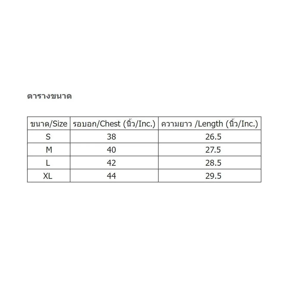 | Size | Chest (Inc.) | Length (Inc.) |