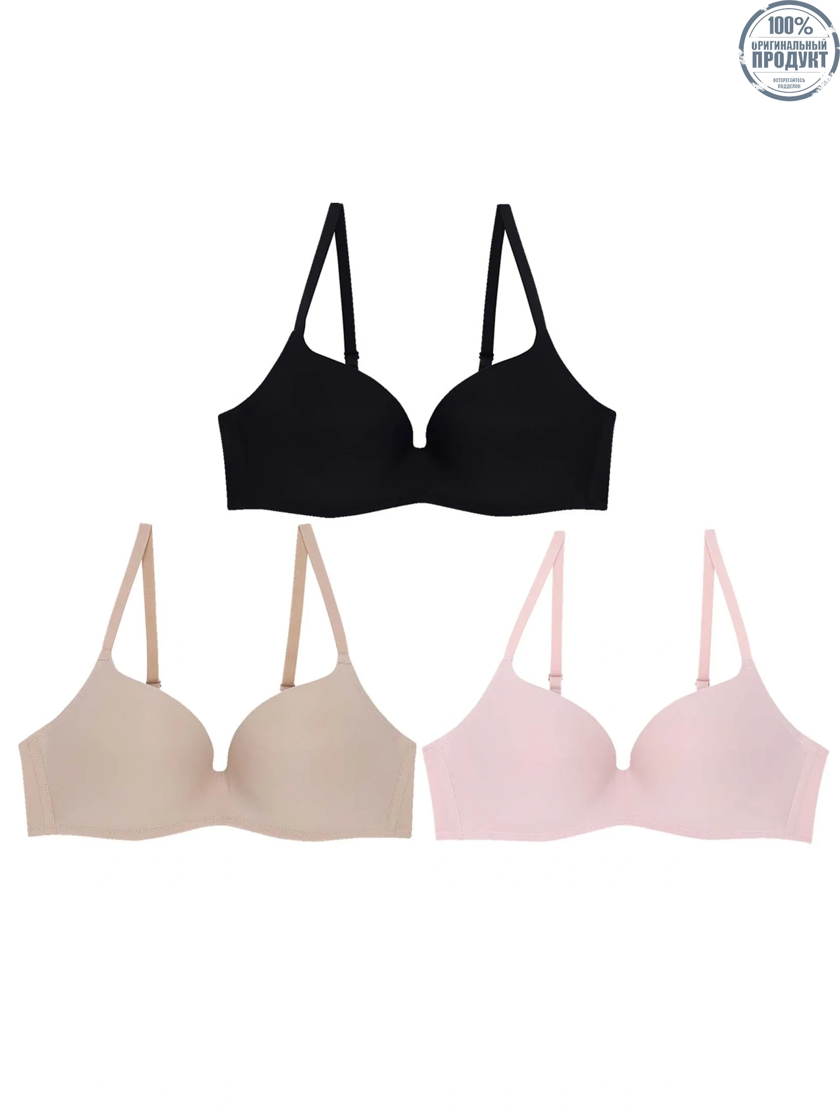 WACOAL Women Surprise Wireless Push Up Bra Set 3 Pcs. Multicolor (Pink / Black / Natural nude)