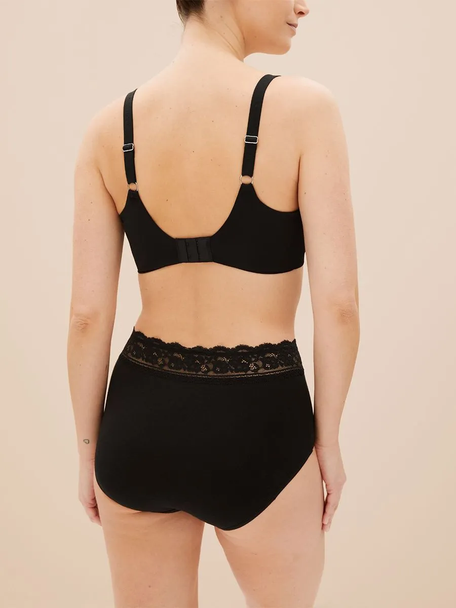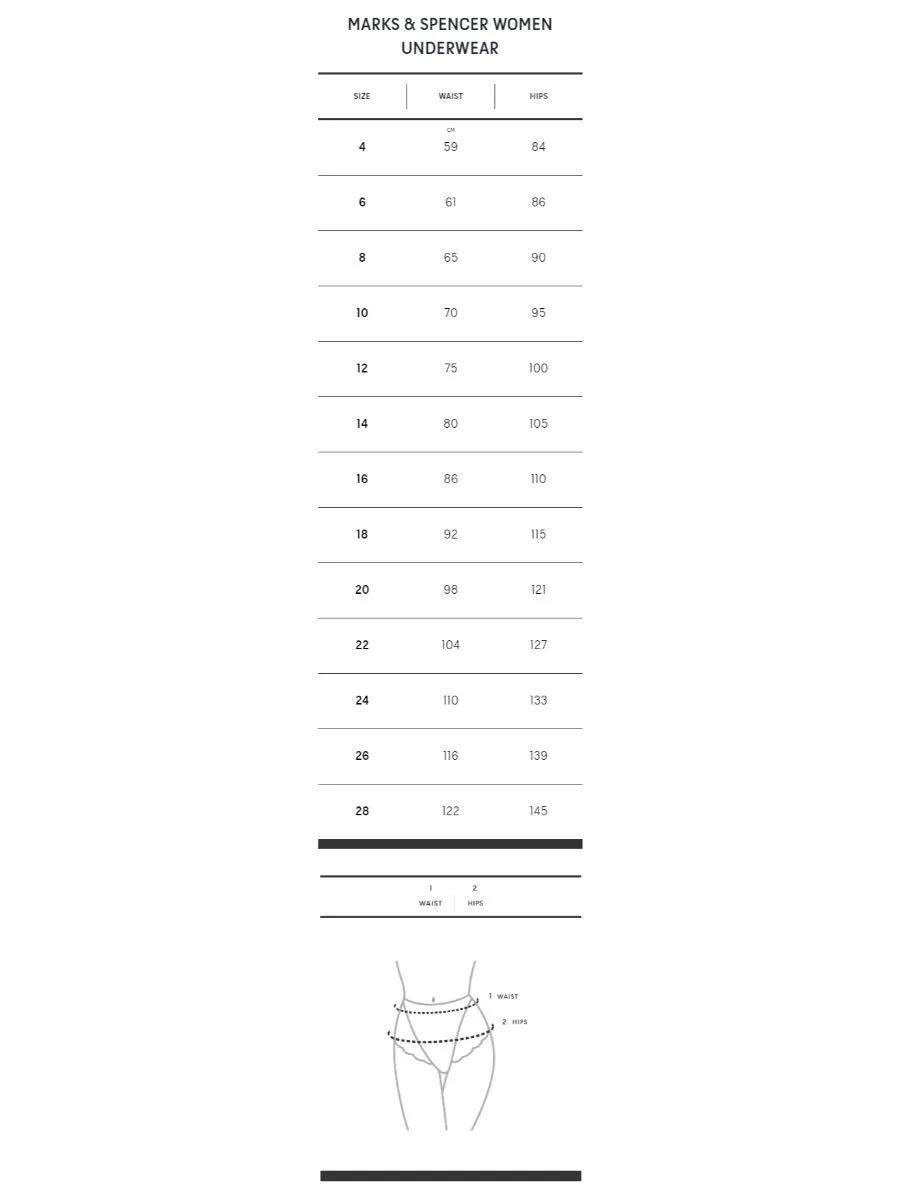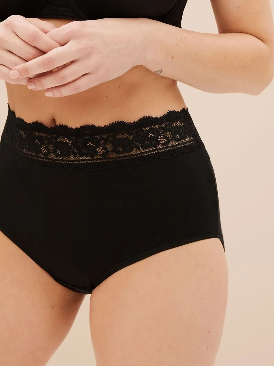 Women Full Briefs Cotton Lycra & Lace Pack 5 pcs by MARKS & SPENCER These practical-yet-pretty knickers are a weekday staple. Full coverage briefs with a super-soft lace trim around the waistband. With added stretch for comfort. It is comfortable that can be move various activities without worry. To support your shape fits every movement. We only ever use responsibly sourced cotton for our clothes.