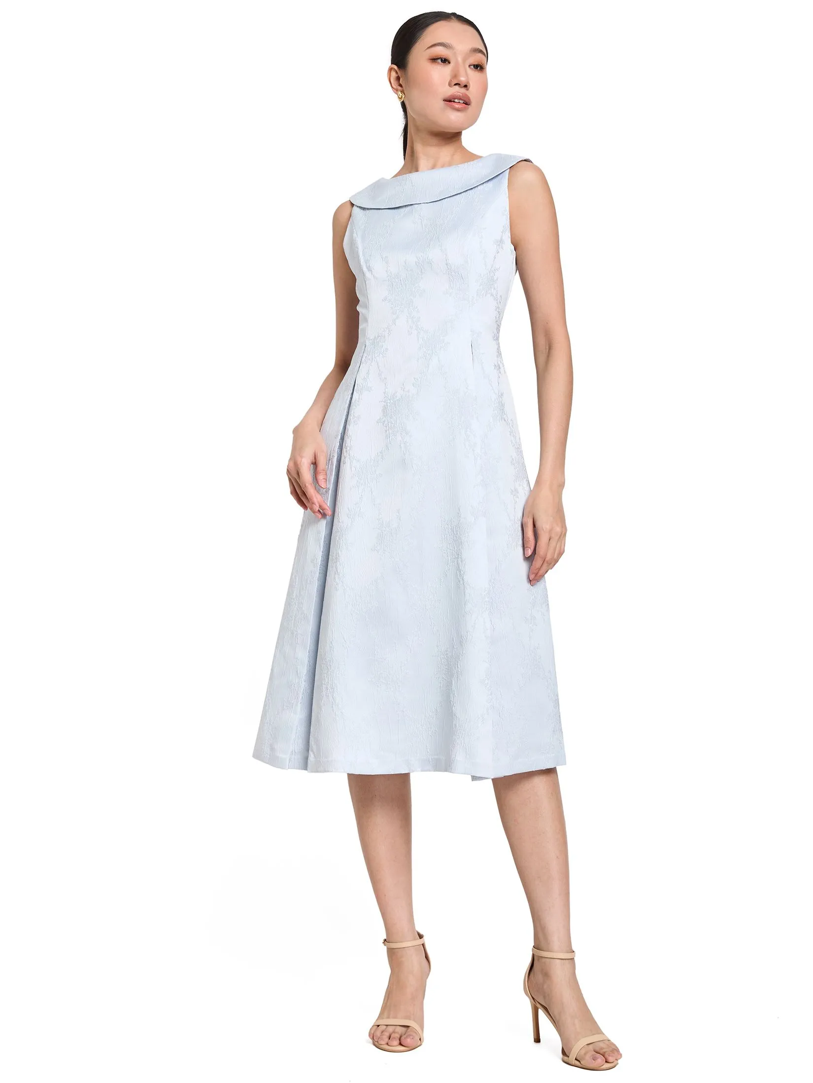 Women jacquard collared boat neck midi dress with pleat detail (100% Polyester)