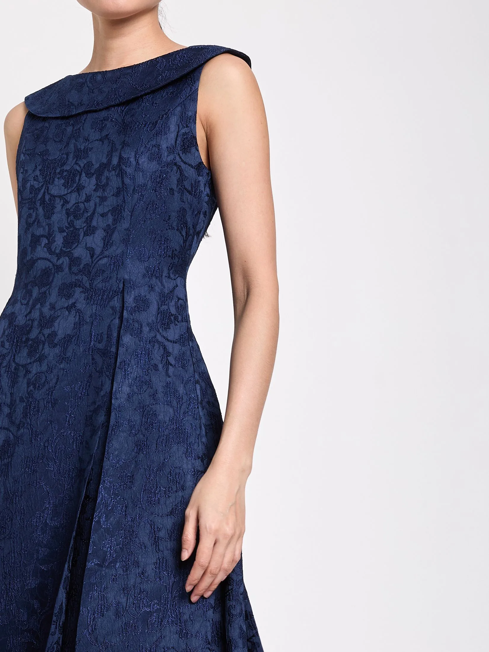 EXPRESSIONS EVENING Women Midi Dress With Collared Boat Neck and Pleat Detail Navy