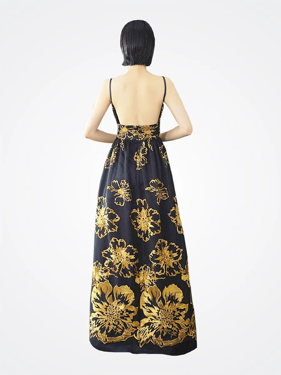 Goudinrqc Women Dazzling Midnight Elegance Evening dress Black and Gold
