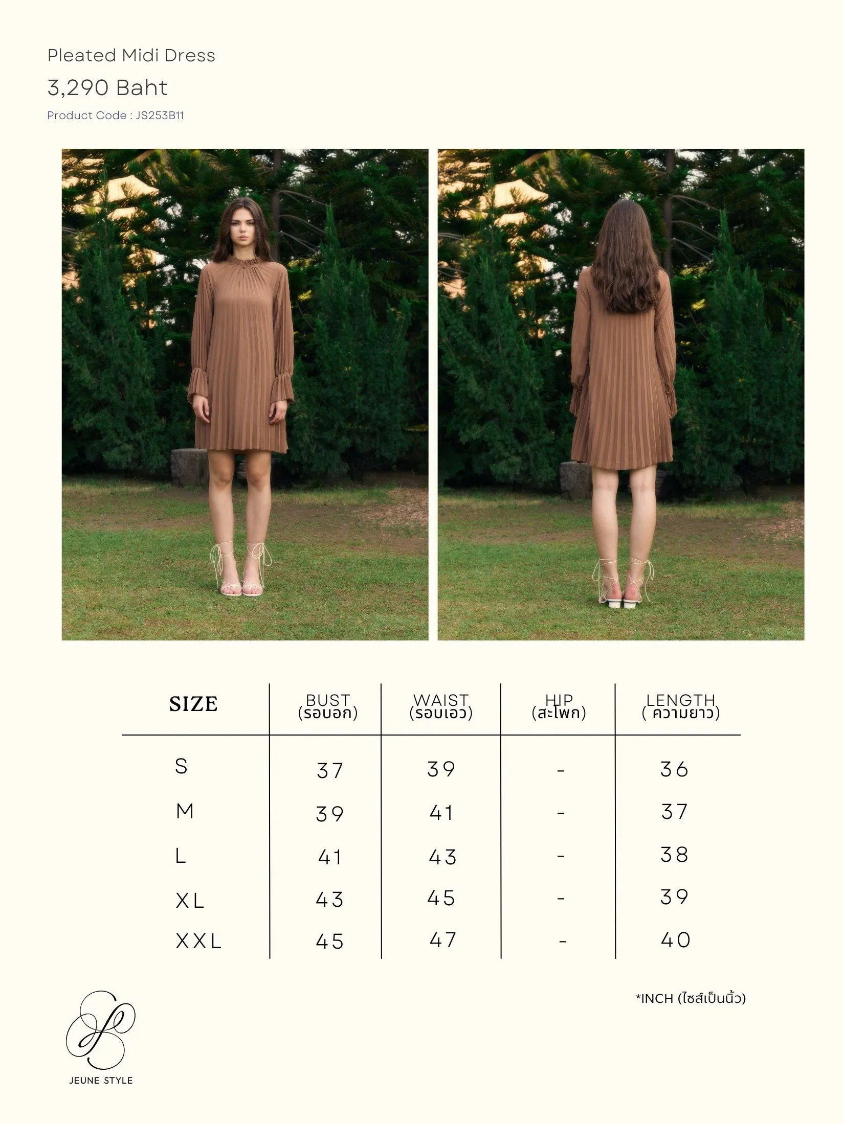 JEUNE STYLE Pleated Midi Dress Women Brown