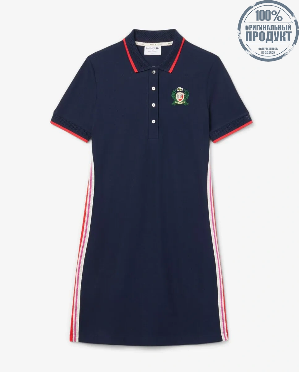 This dress is the fruit of 90 years of Lacoste elegance and expertise. Made in our historic manufacturing facilities in Troyes, France, from a sophisticated textured piqu? knit, with an embroidered heritage shield and striped mesh bands. A must-have piece with a fitted cut and sophisticated touches, including a four-button placket.