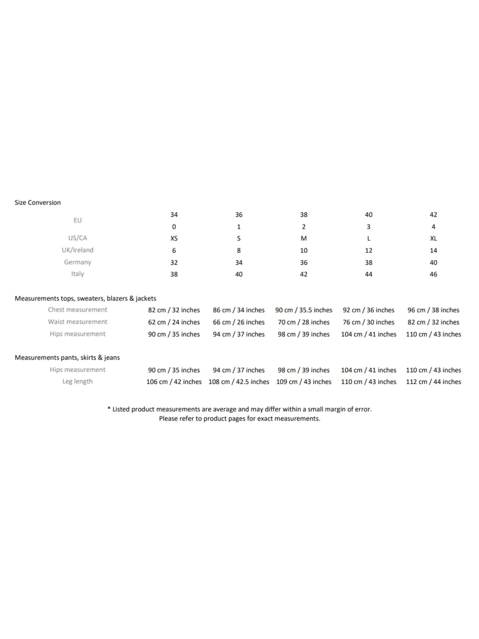 - Care Label: Hand wash, Do not bleach, Do not tumble dry, Do not iron, Professional dry cleaning in hydrocarbons, mild process, Line drying in the shade, Wash with similar colours