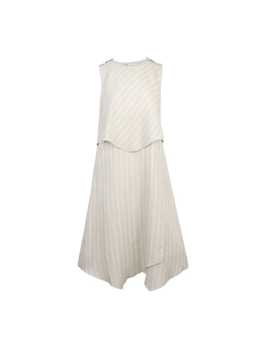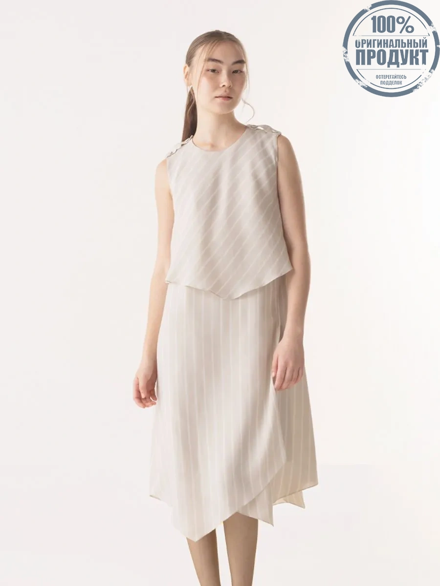 Striped dress technique Knee length The neck band is sewn back to a layered piece. Suitable for wearing on casual days. But it can still be formal thanks to the appropriateness of the design. There is a fake pocket on the side. and decorated with shoulder epaulettes (Shoulder Epaulette)